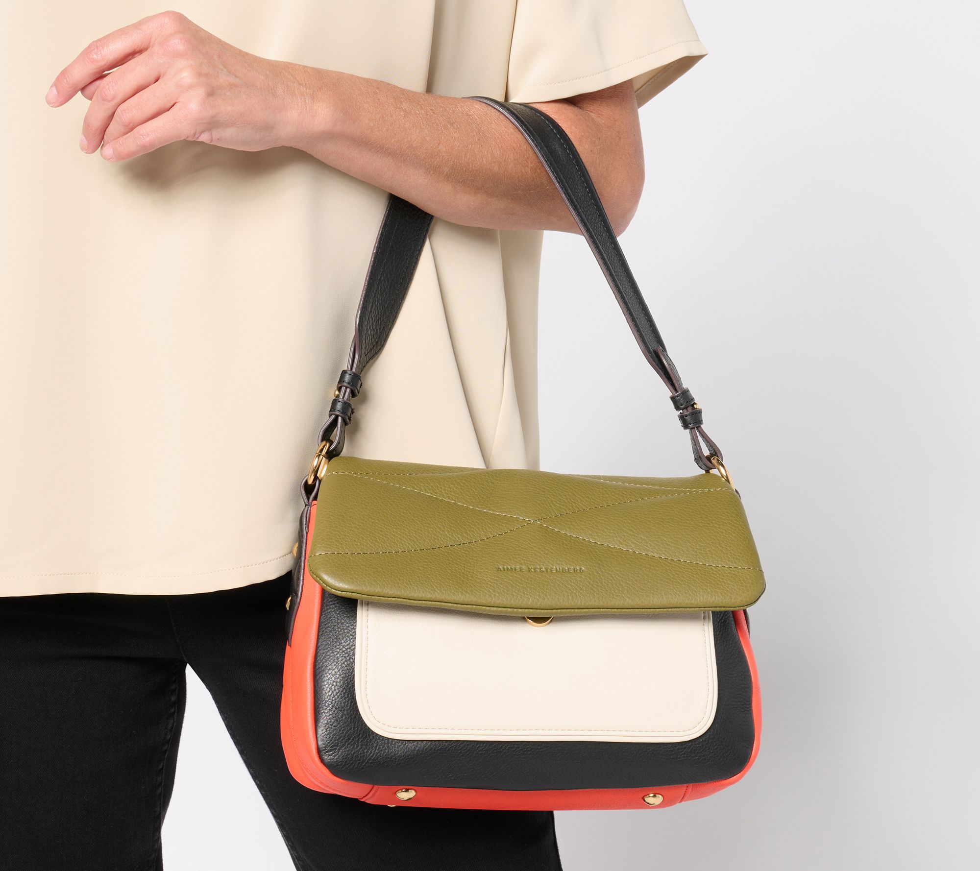 Keep calm and carry Aimee Kestenberg's Peace of Me leather shoulder bag. A fashion-fresh blend of glove-tanned leather and custom hardware, the well-structured design organizes your daily must-haves while speaking to your ever-evolving sense of style. From Aimee Kestenberg.