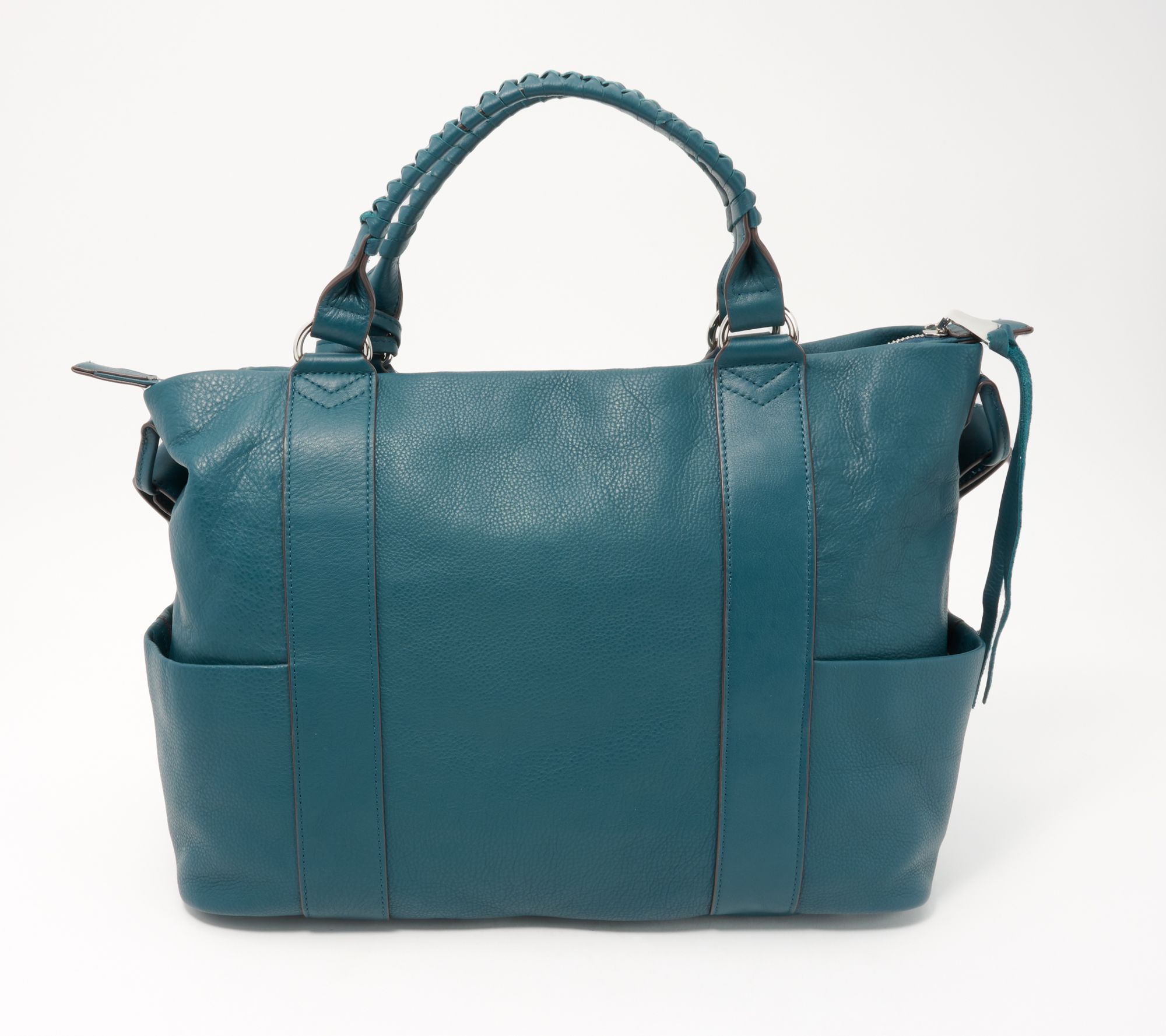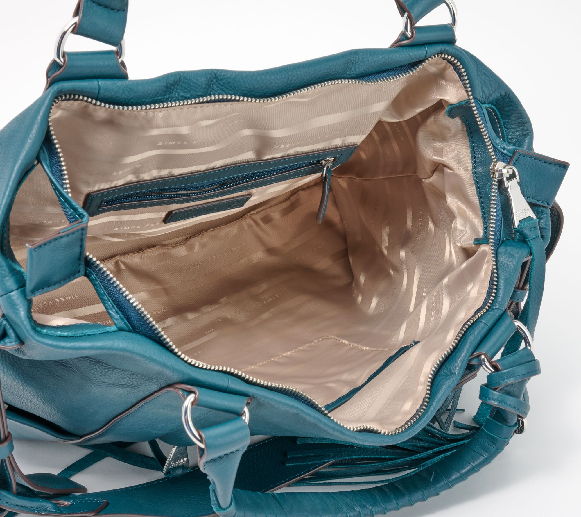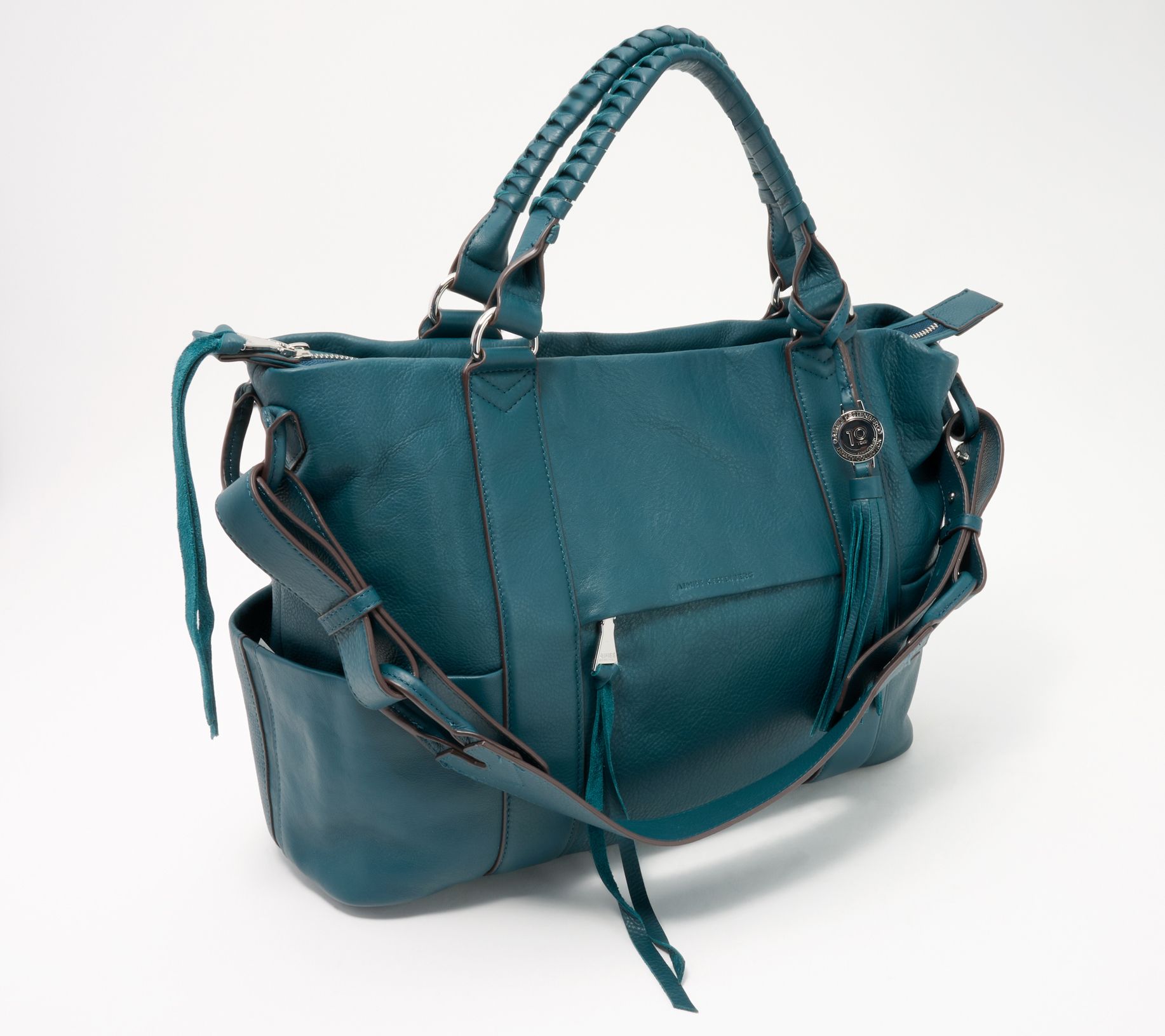 This stylish slouchy satchel has three exterior pockets and an extra large main entry that can handle all of your items of the day. From Aimee Kestenberg.