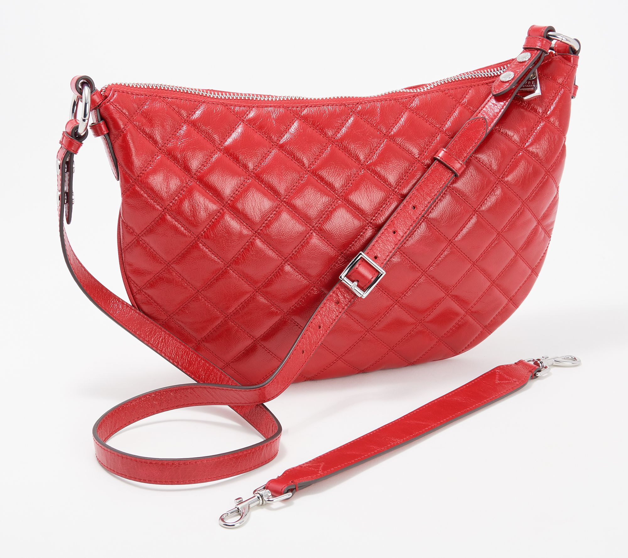 • Zipper main entry, removable shoulder strap, adjustable crossbody strap, hardware details