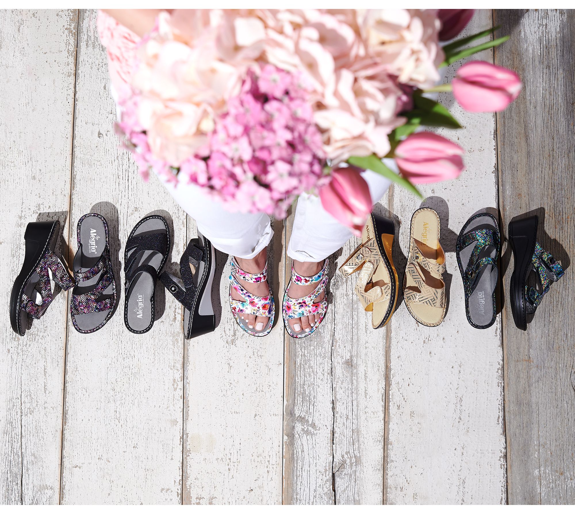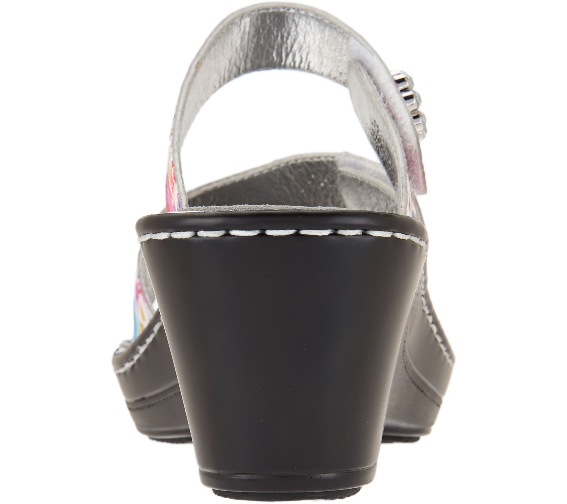 Give your summer wardrobe an extra dash of whimsy with these charming wedge sandals from Alegria. The leather straps provide the perfect customized fit with hook-and-loop closures. Decorative hardware on one of the straps is the final flourish that completes the look. From Alegria.