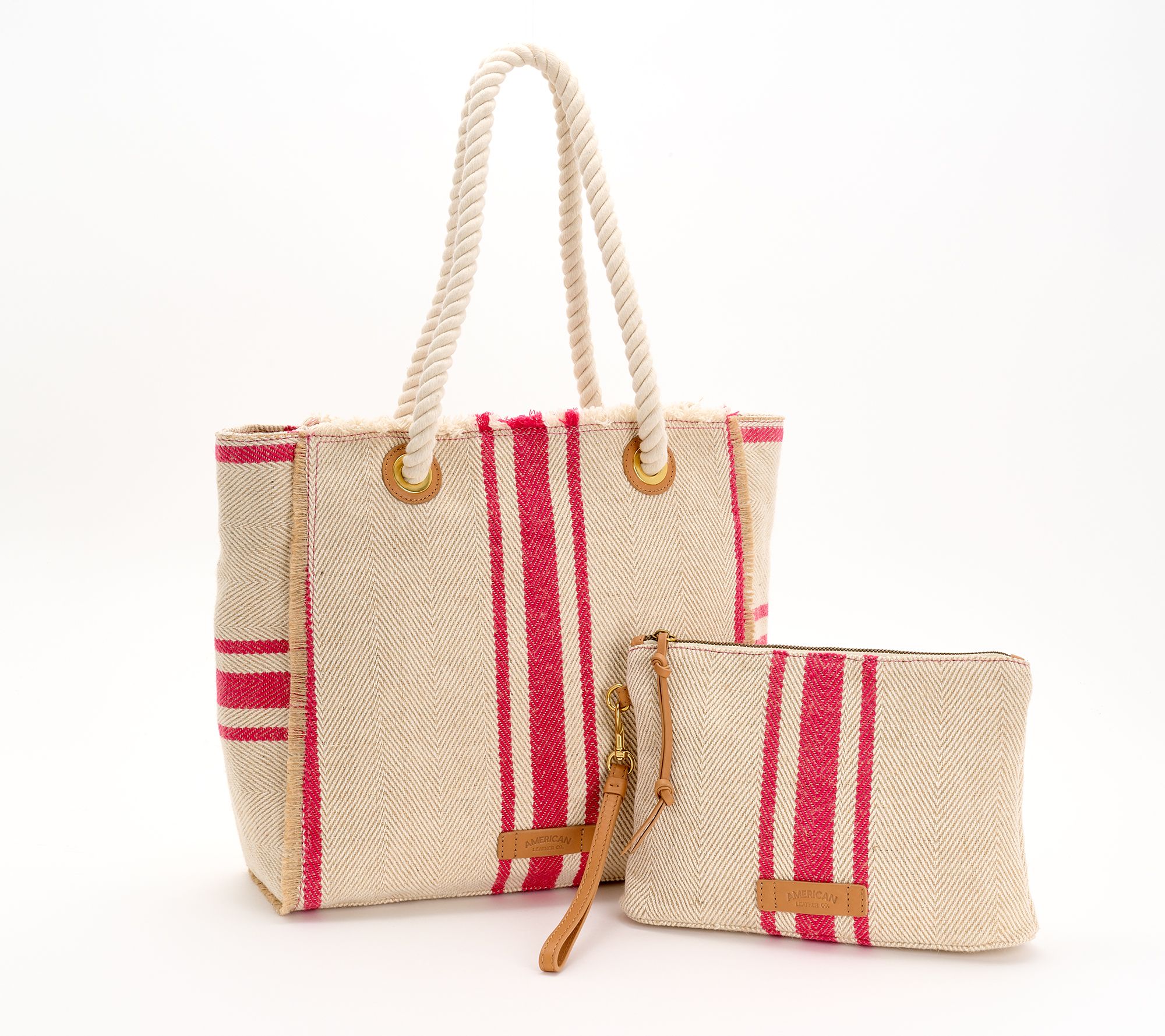 Everyday errands or vacation getaways, this coordinated canvas tote and wristlet pouch provide plenty of organizational options. Grab the wristlet pouch for quick trips, and then toss it into the tote when heading out for longer adventures. From American Leather Co.