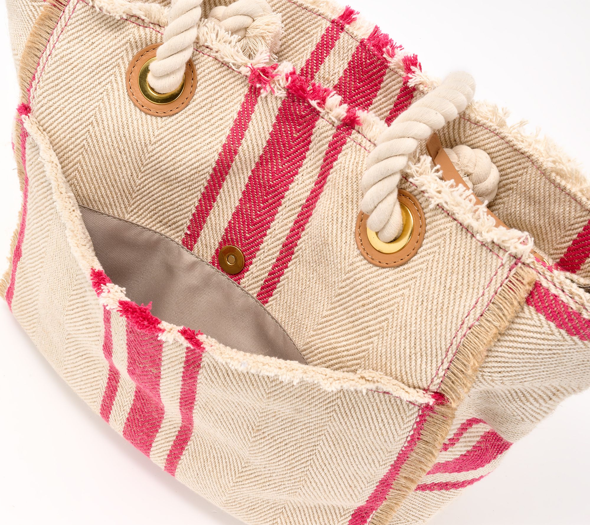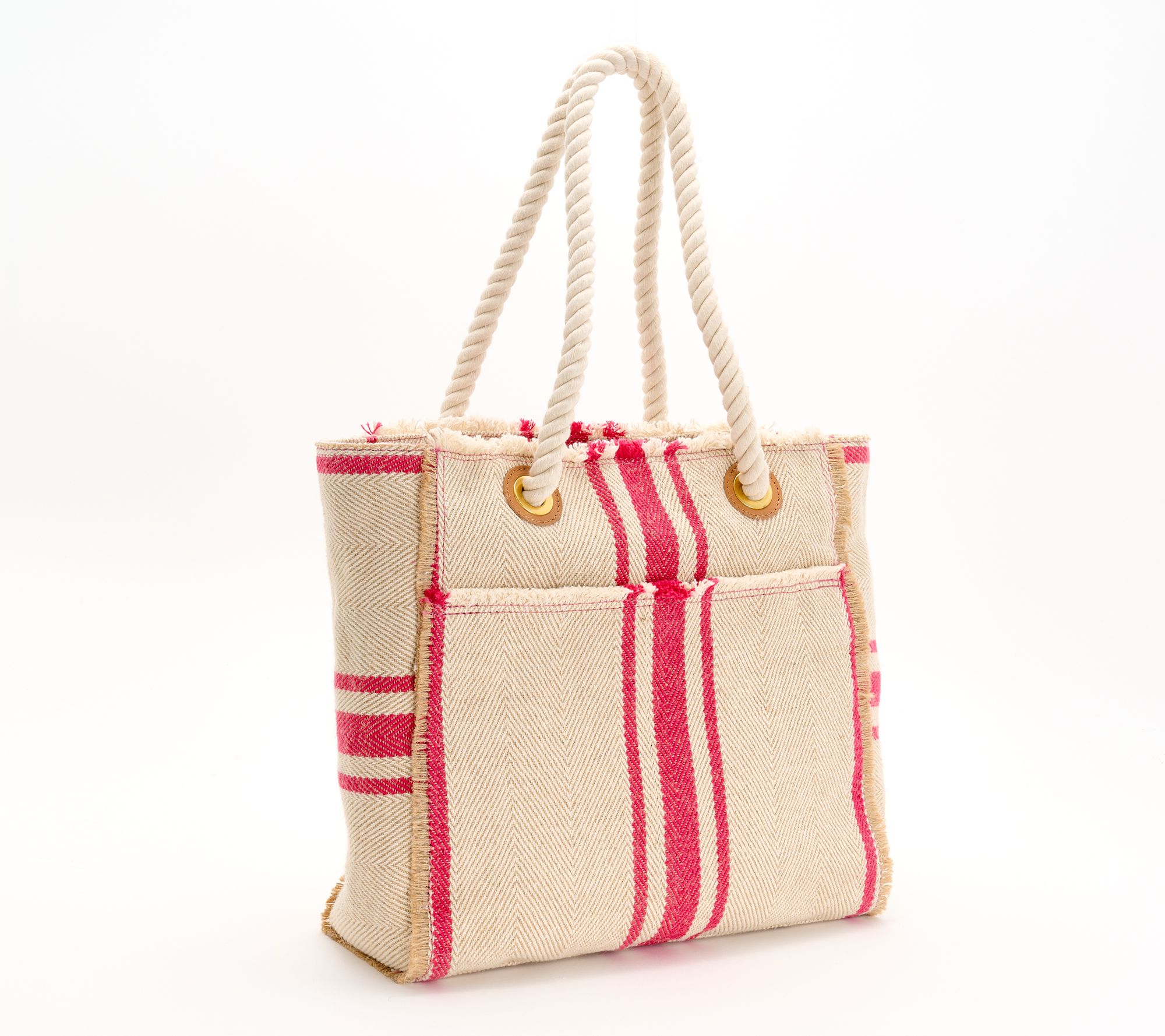 • Body 80% cotton/20% jute; trim 100% leather; lining 100% polyester