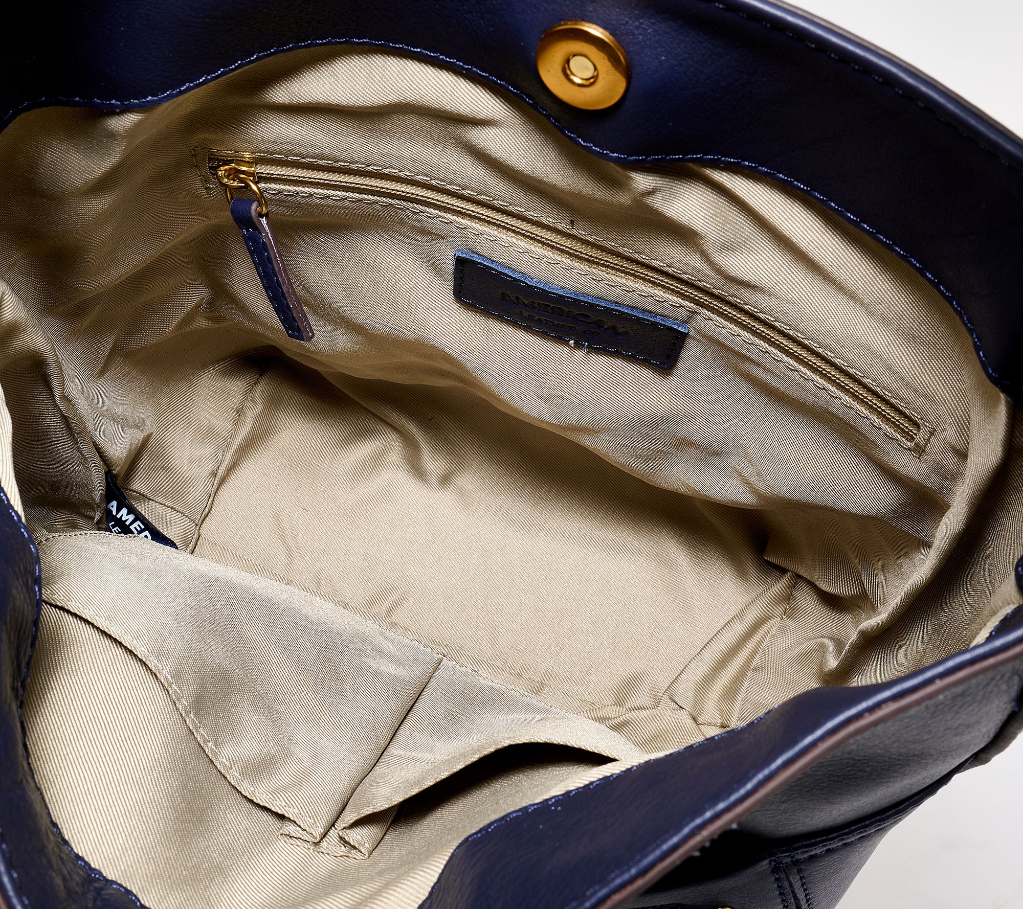 • Lined interior, zipper pocket, two slip pockets