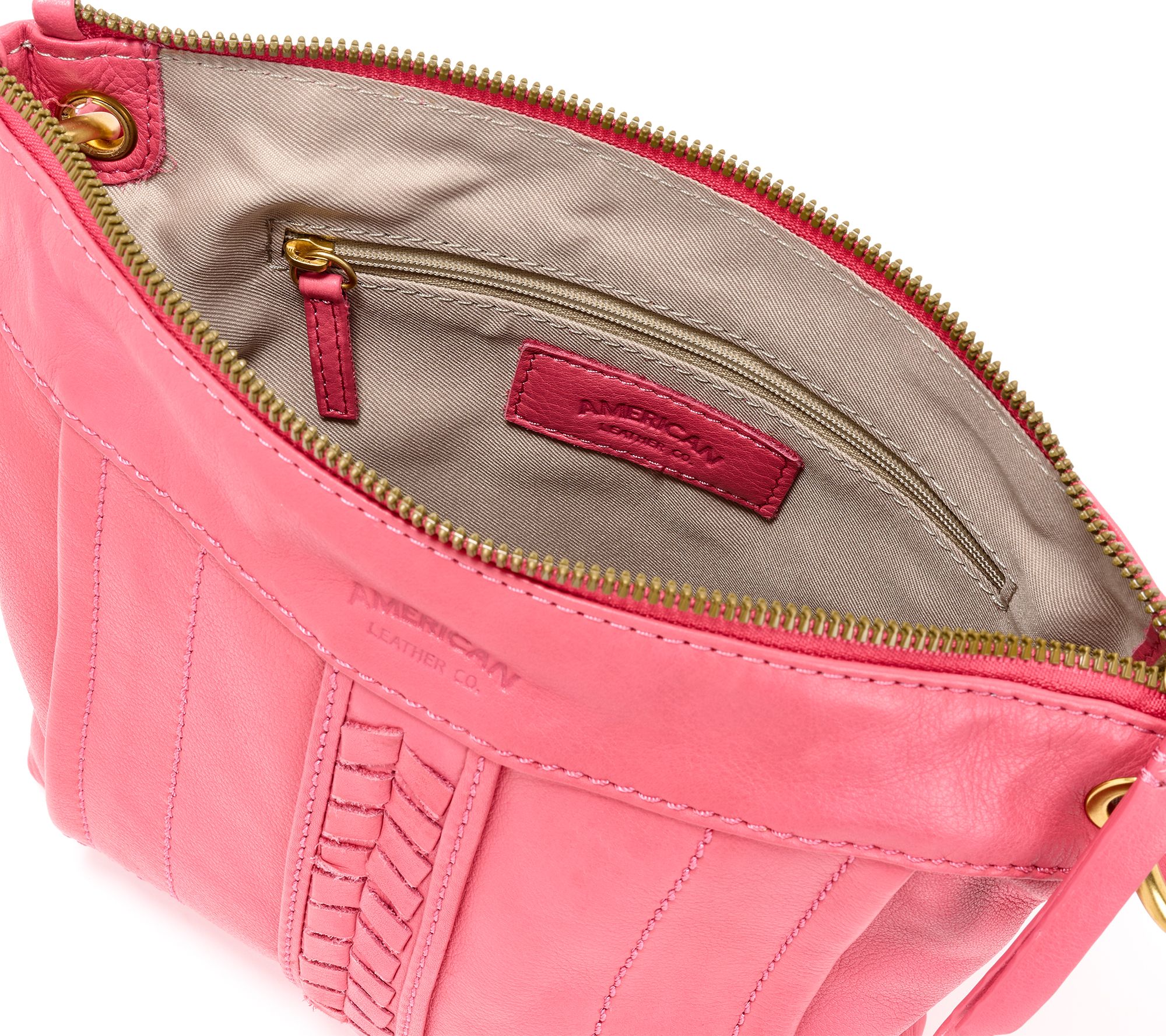 • Lined interior, zip pocket, two slip pockets