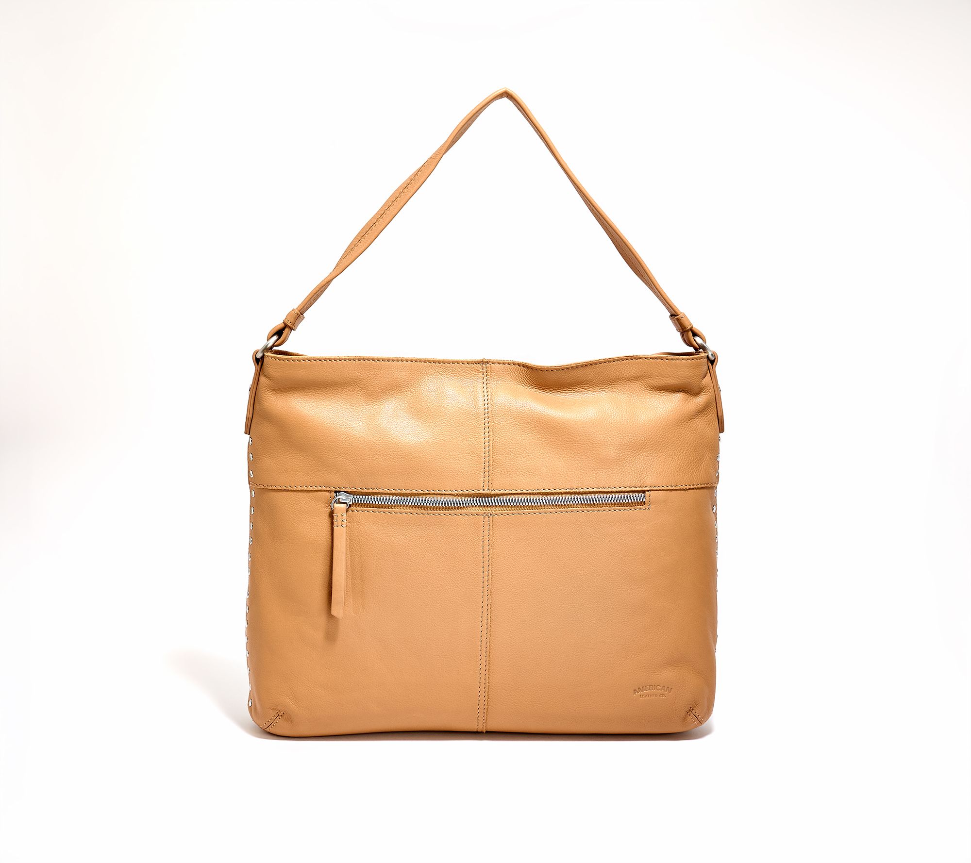 A day of errands or an evening out becomes effortless with this hobo shoulder bag -- crafted in supple leather and detailed with decorative studs for standout flair. Keep essentials organized with roomy compartments, easy-access zip pockets, and a comfortable strap that slips over your shoulder with ease wherever you're headed. From American Leather Co.