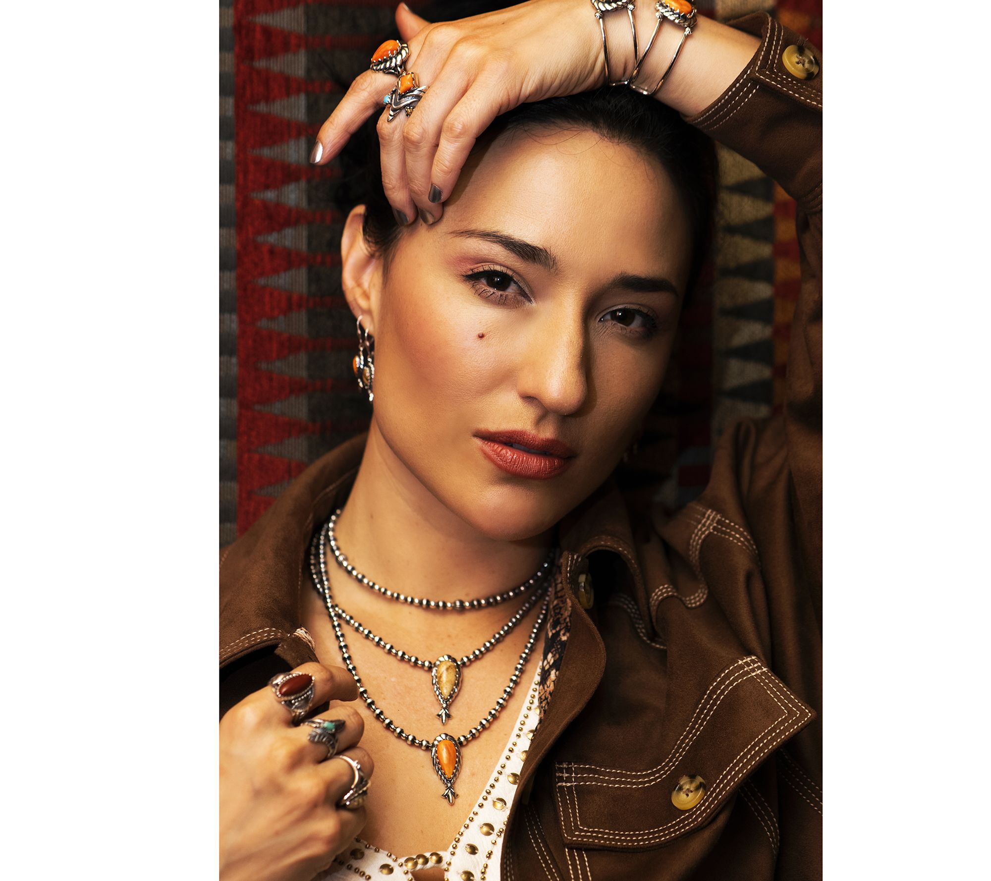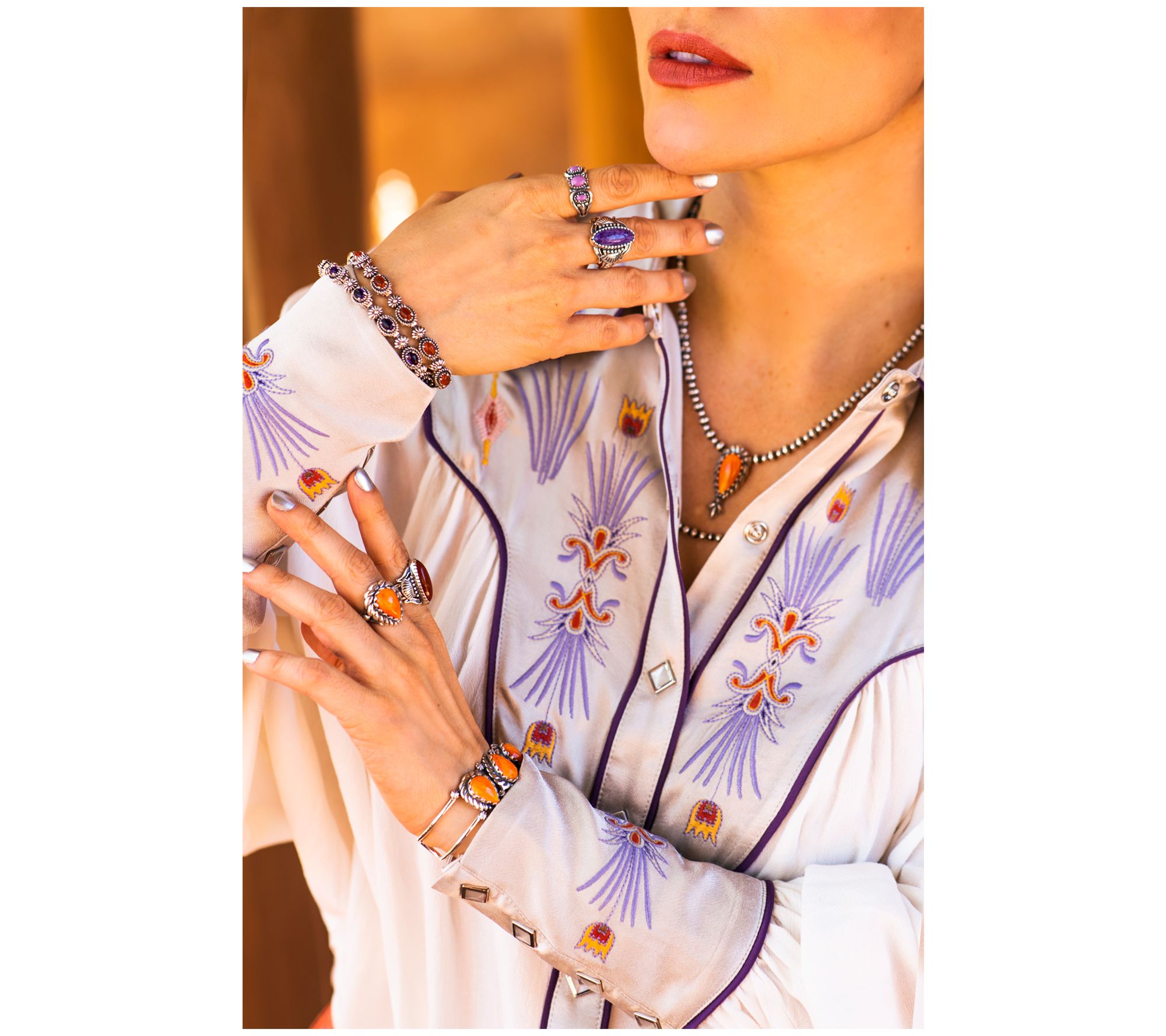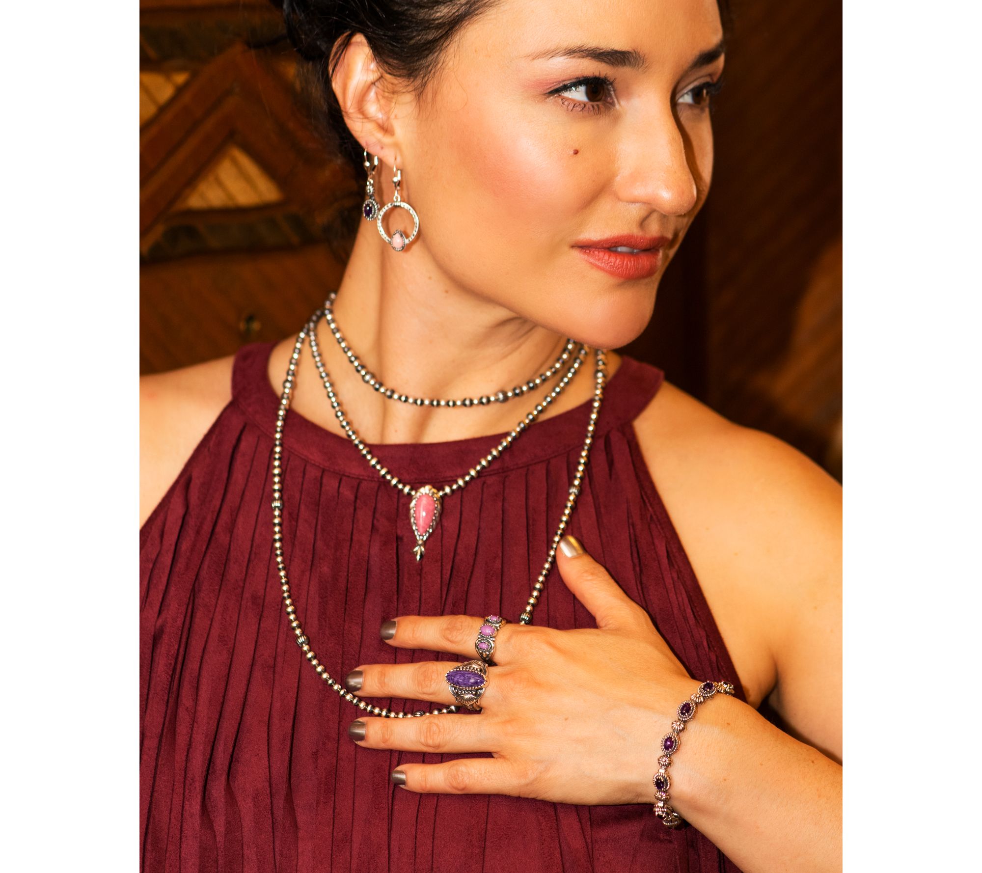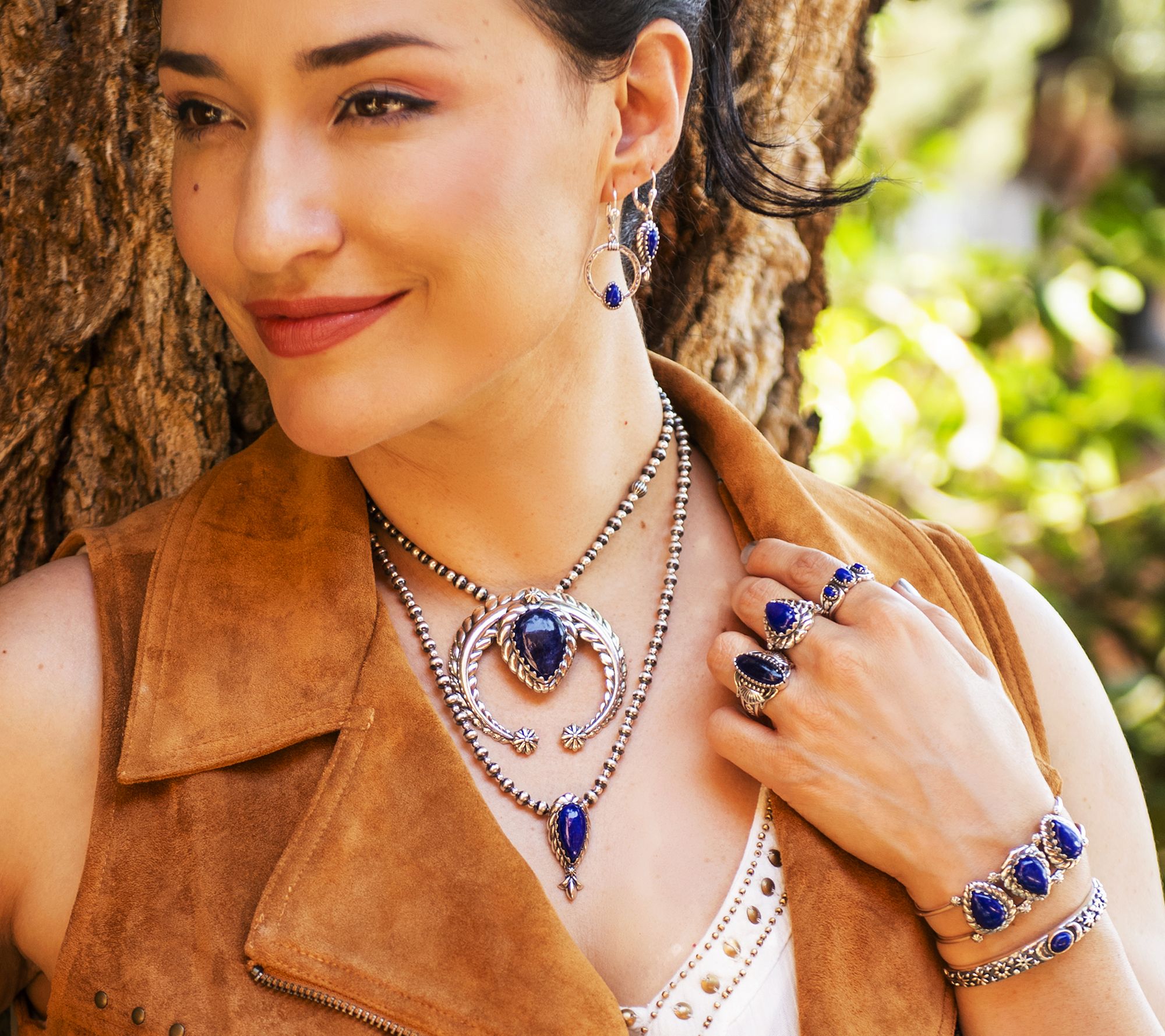 Start a conversation -- or a collection. This gorgeous squash blossom necklace helps everyday looks feel intentionally styled. Striped beads give this style its glam effect. From American West Jewelry.