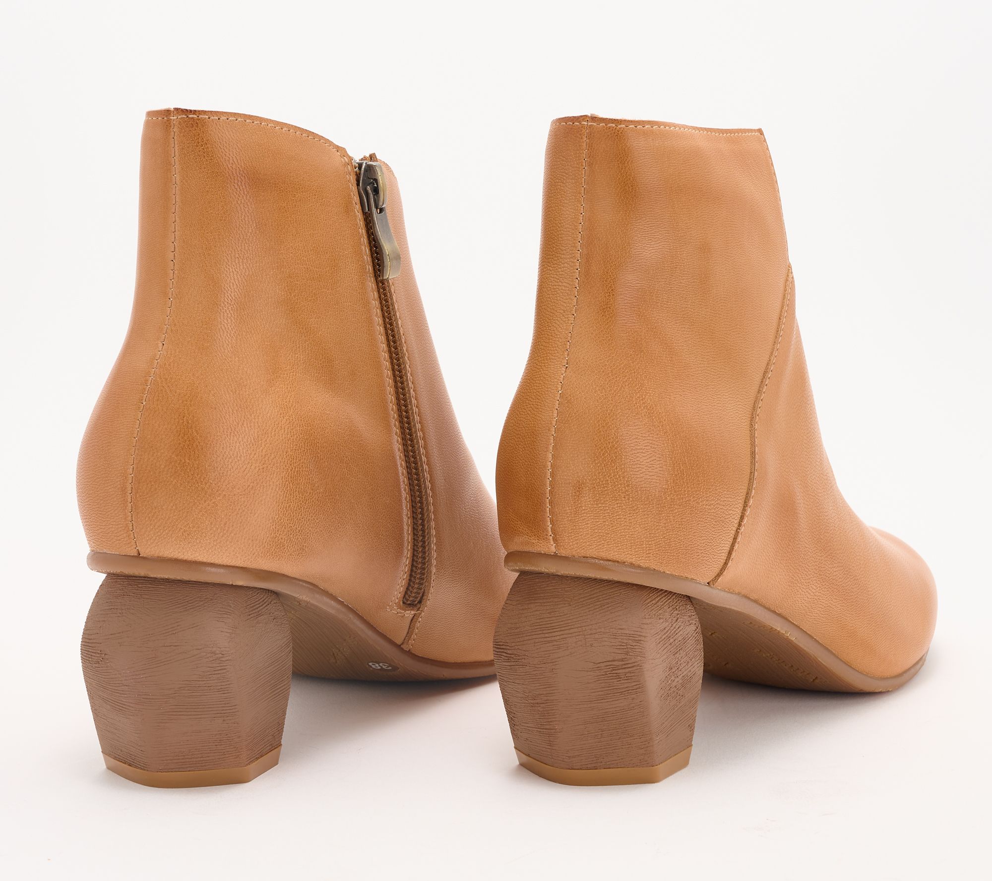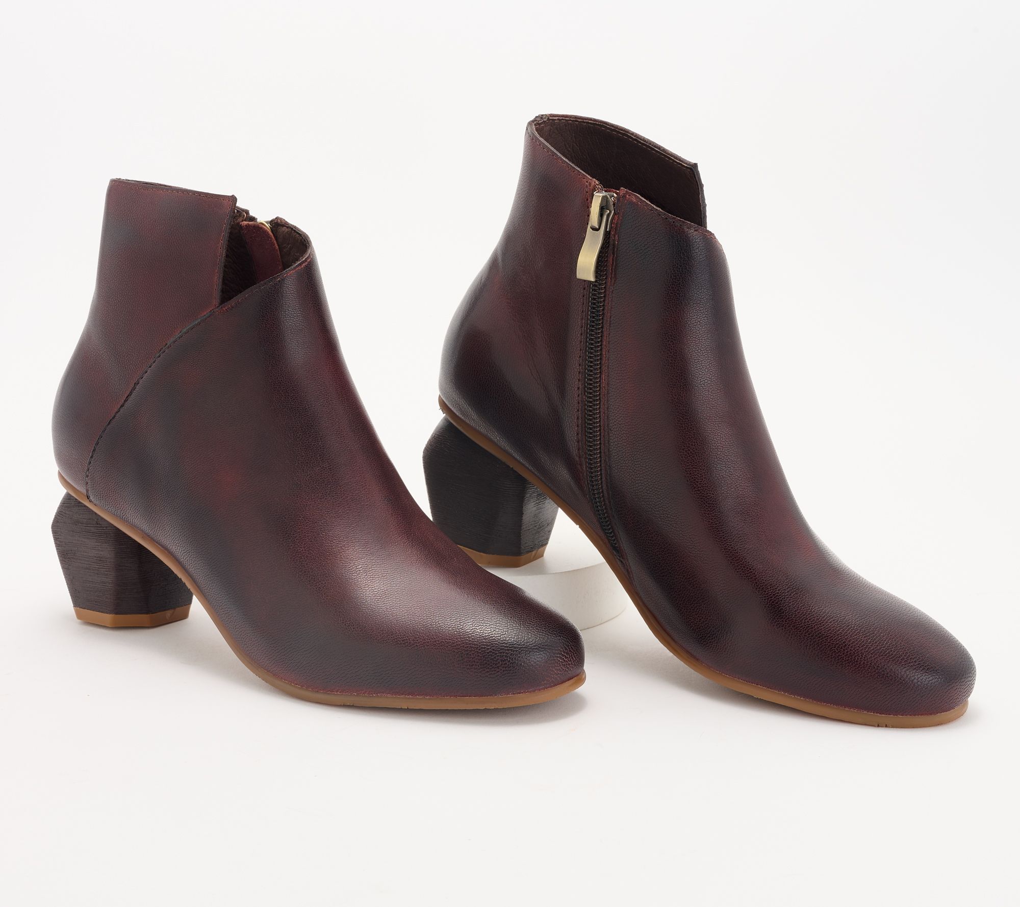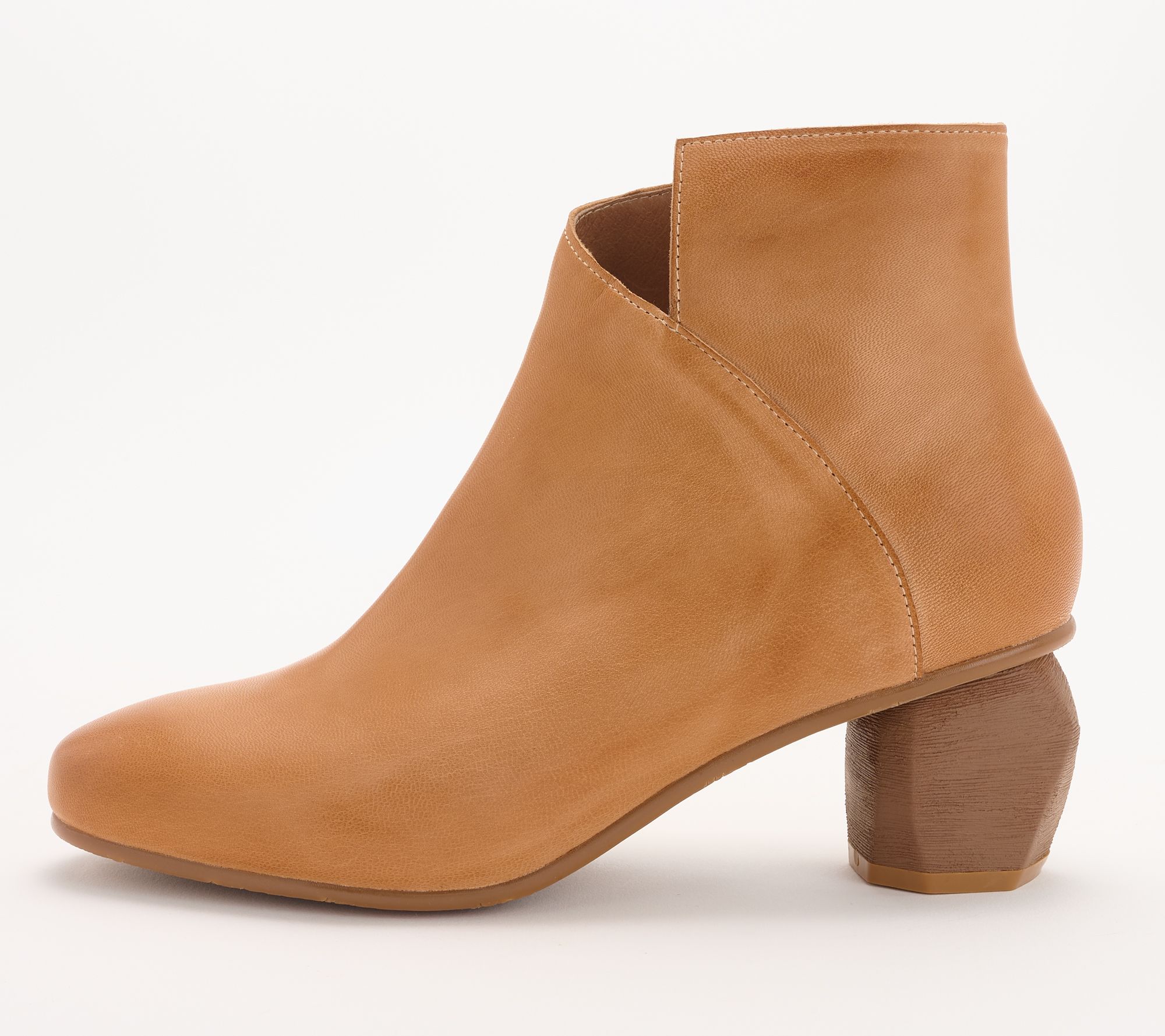 • Sculpted leather upper, side zip entry, octagon-shaped heel