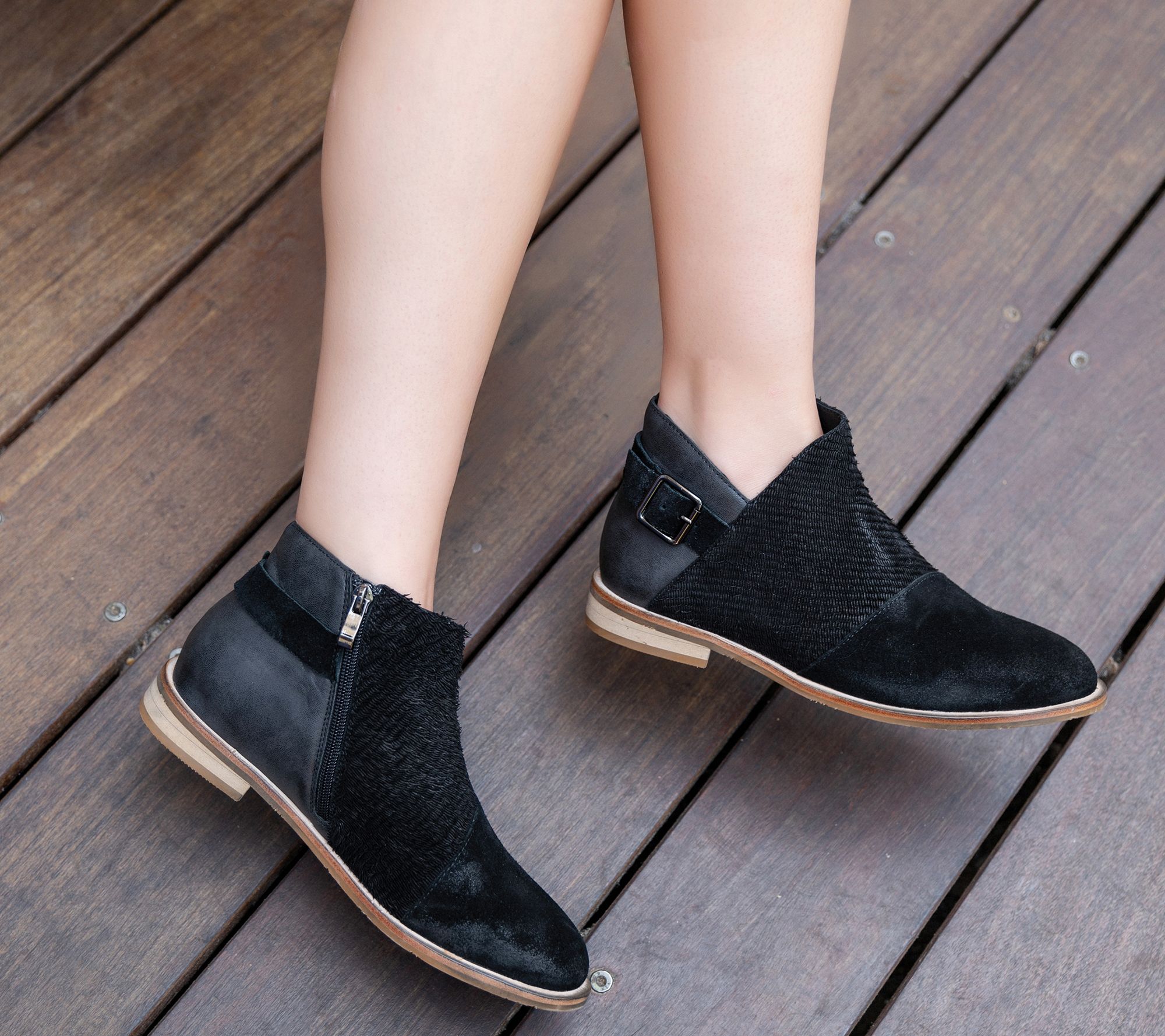 "As Is" Antelope Leather Buckled Ankle Boots- Laran