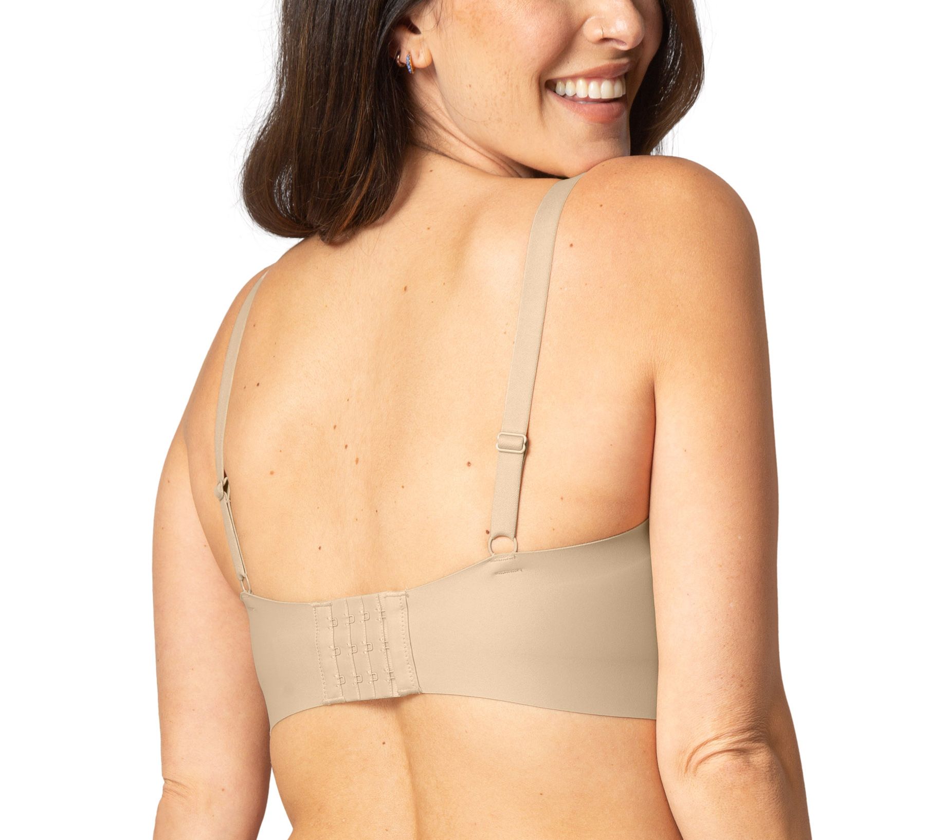 • Features: wicking, water repellant, wireless design, removable cups, hook-and-eye closure, adjustable straps