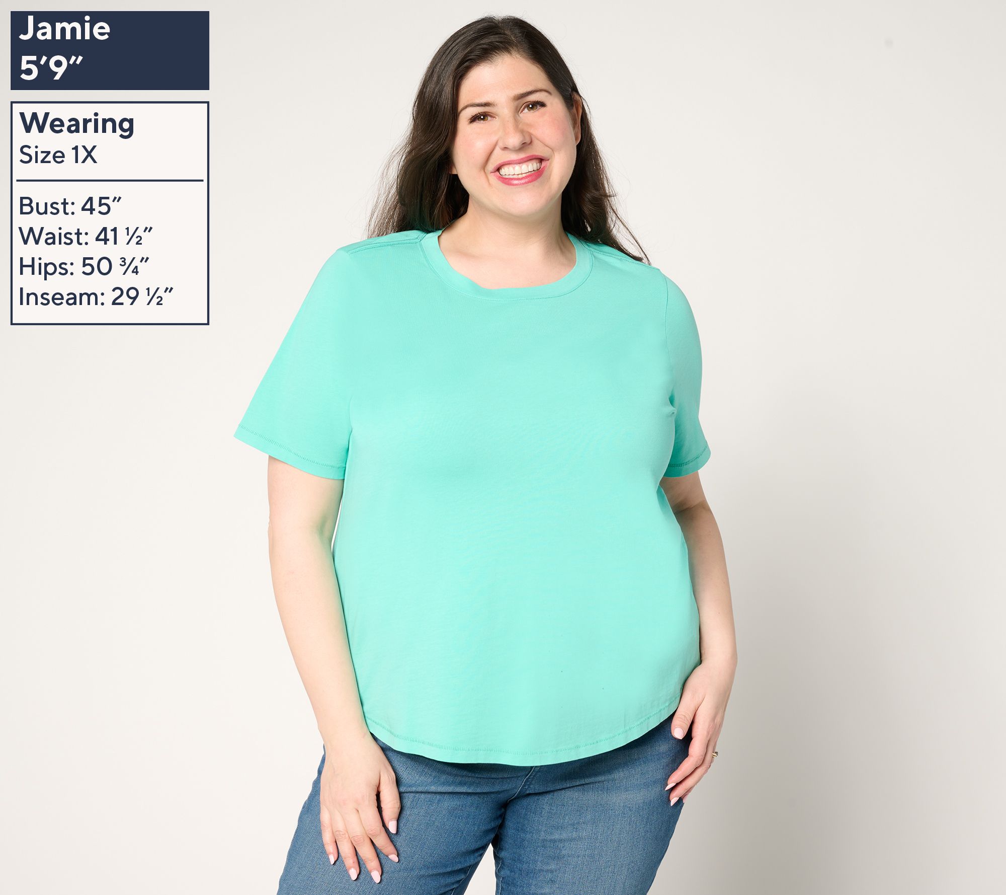 Refreshing your basics? Upgrade your wardrobe essentials with this uber-soft crewneck tee from AnyBody®. Perfect for layering or slaying it solo, this is the must-have you'll love to live in year round. (Maybe grab a few colors!) From AnyBody®.