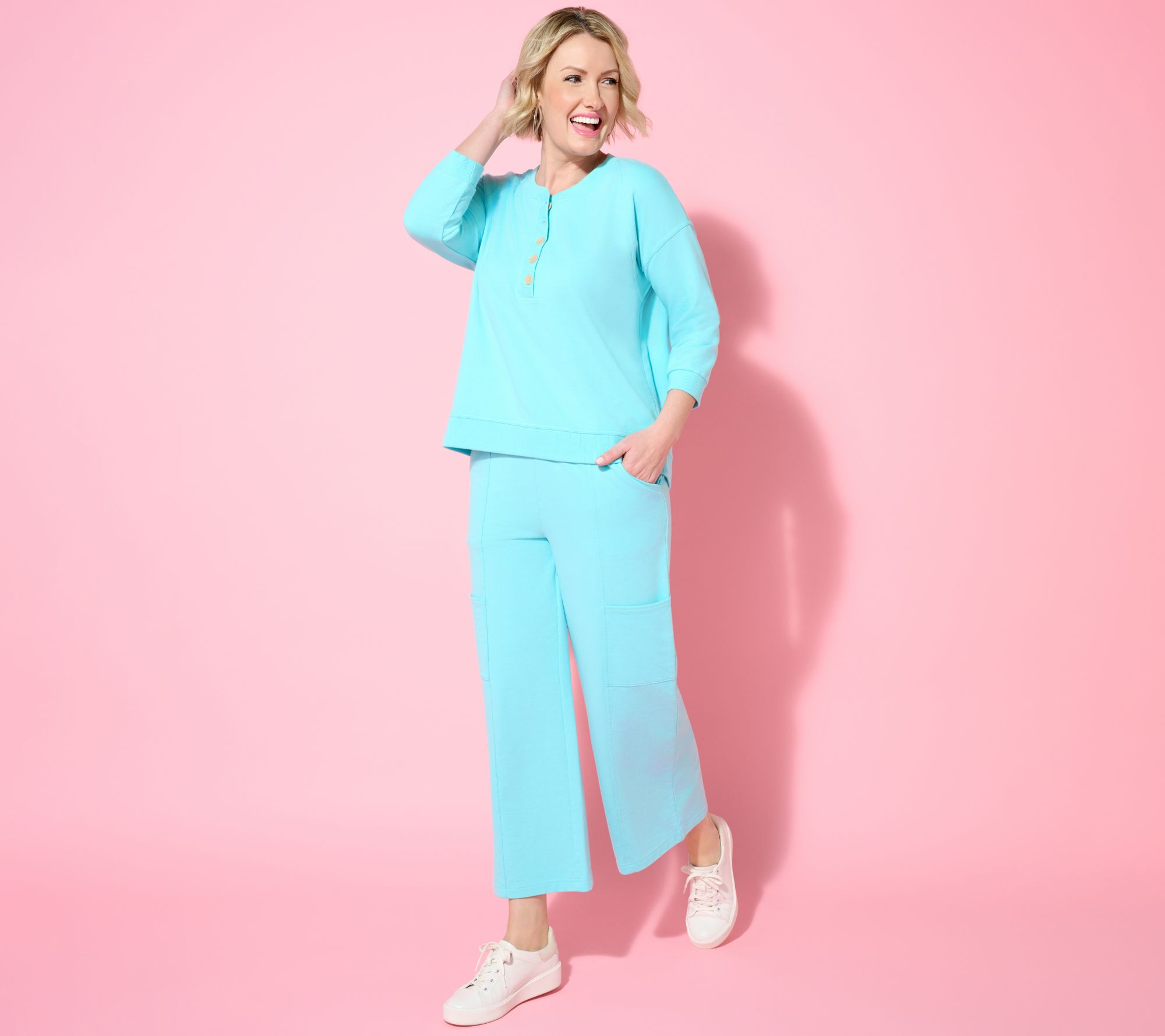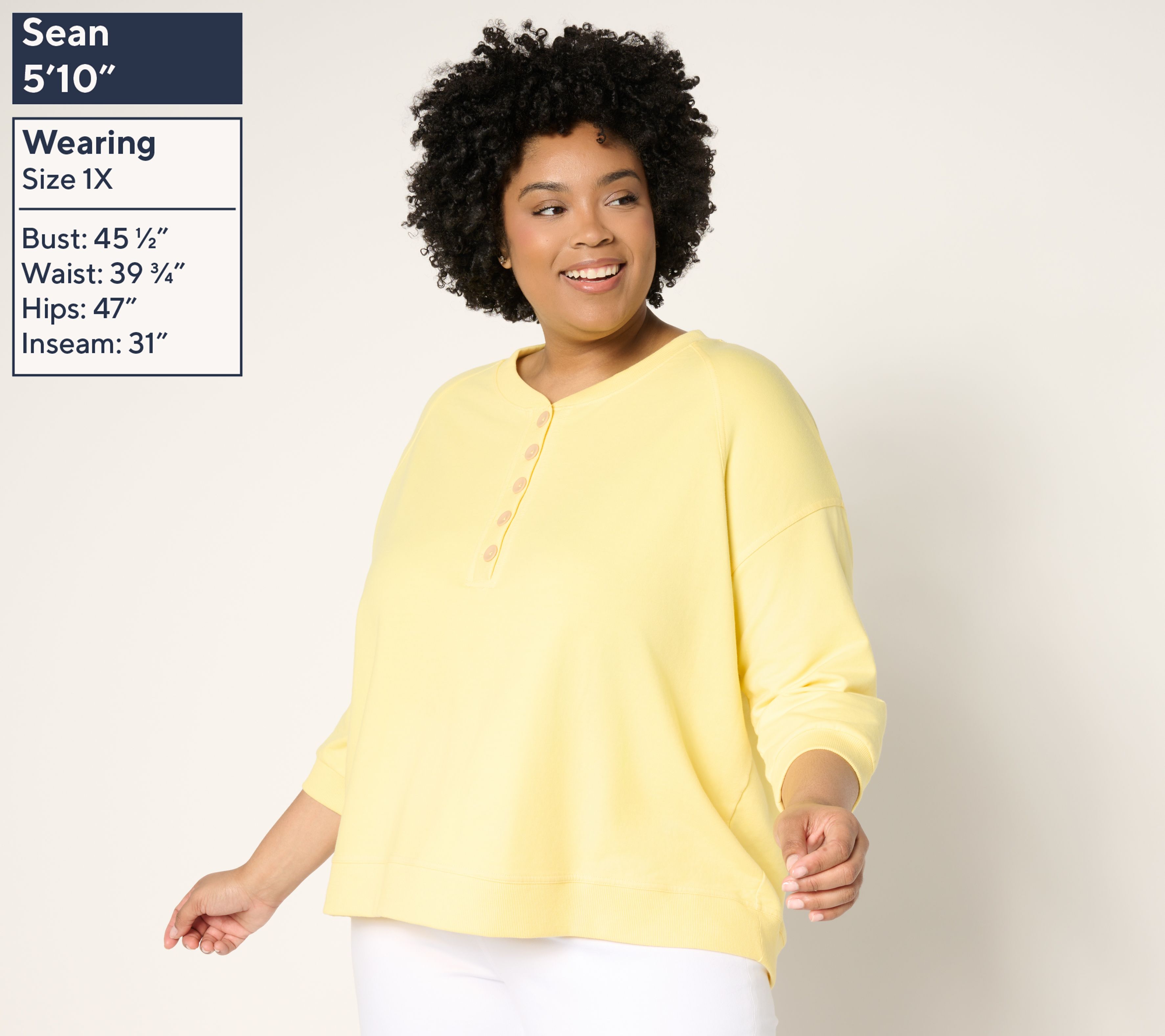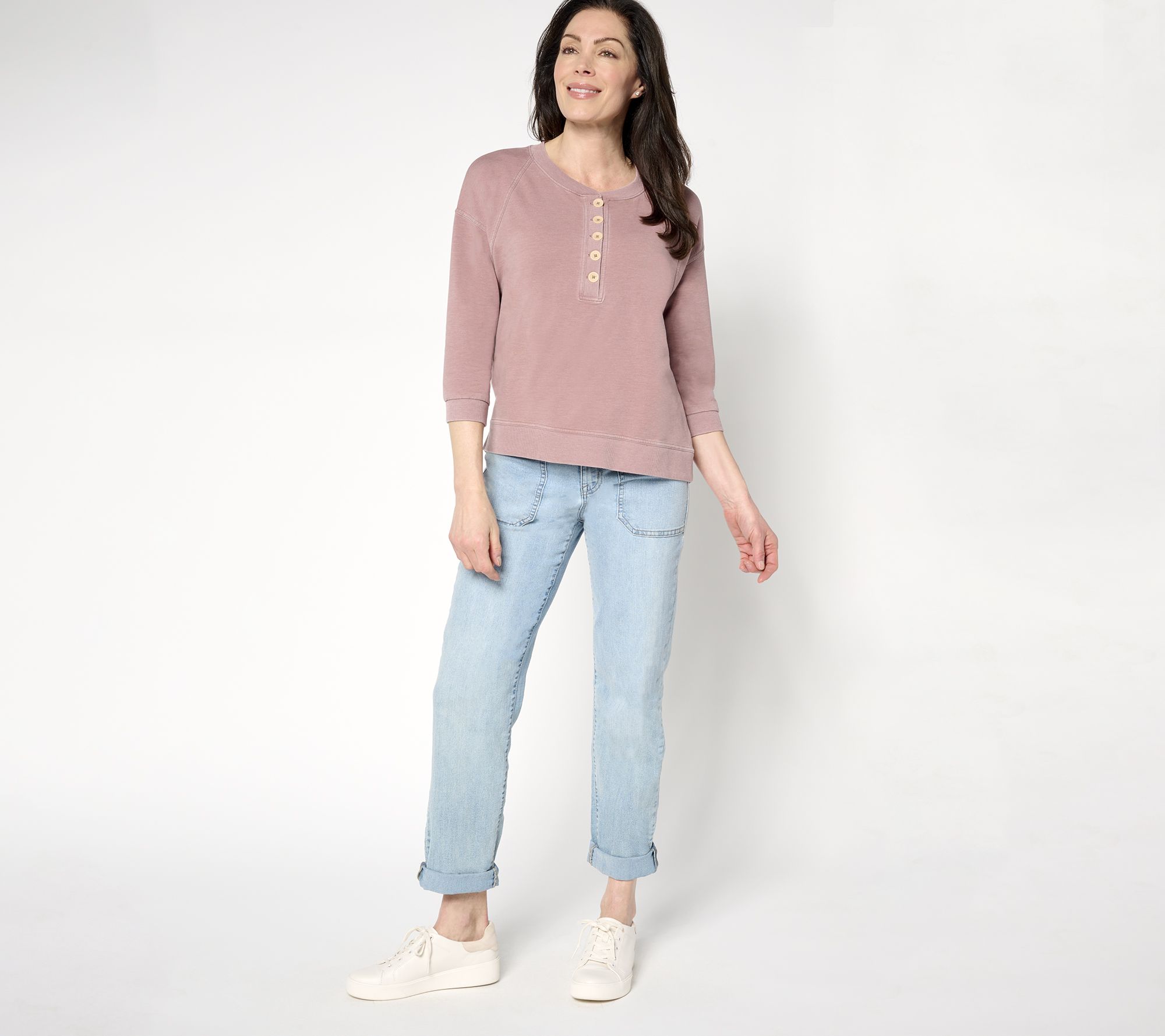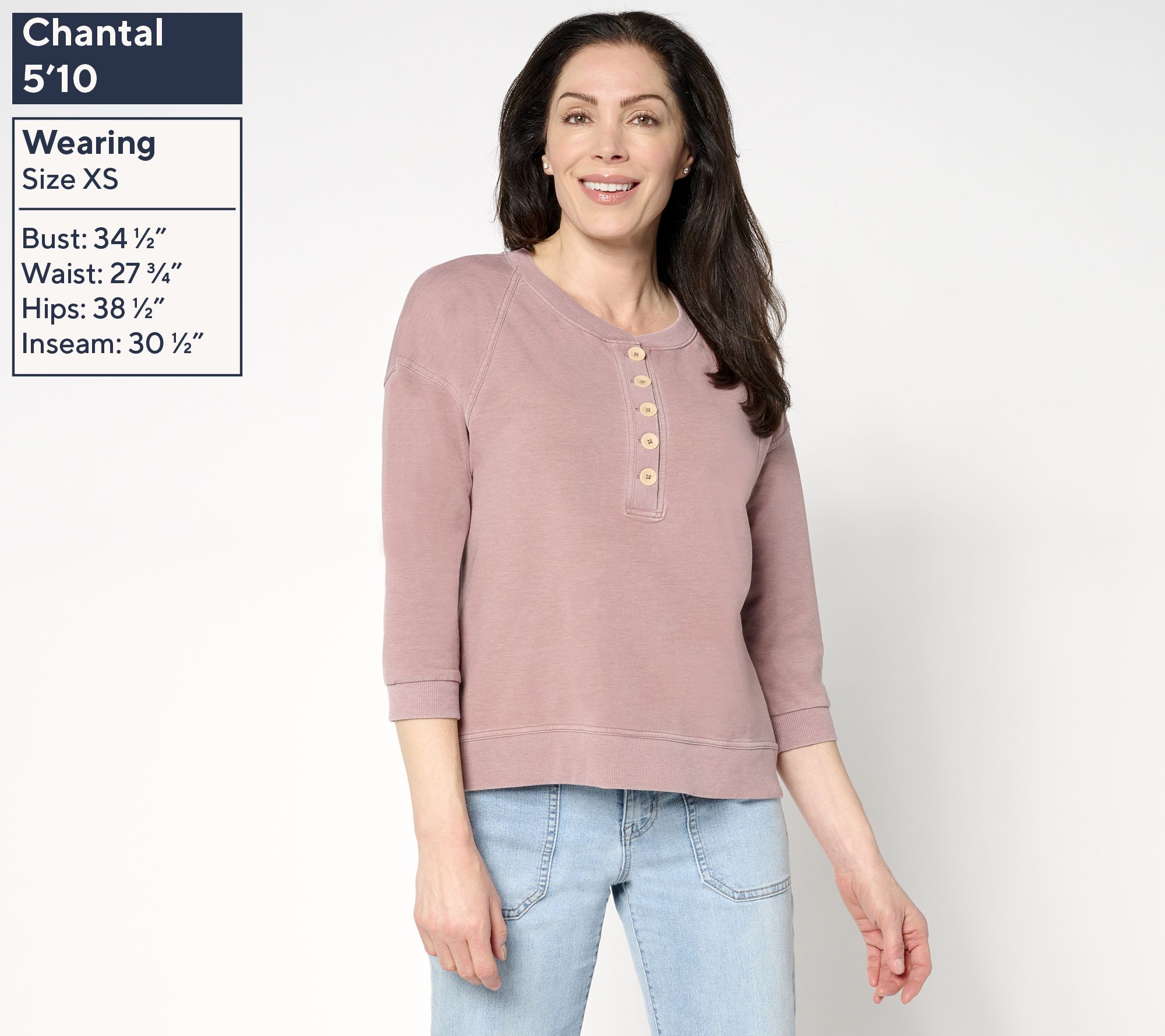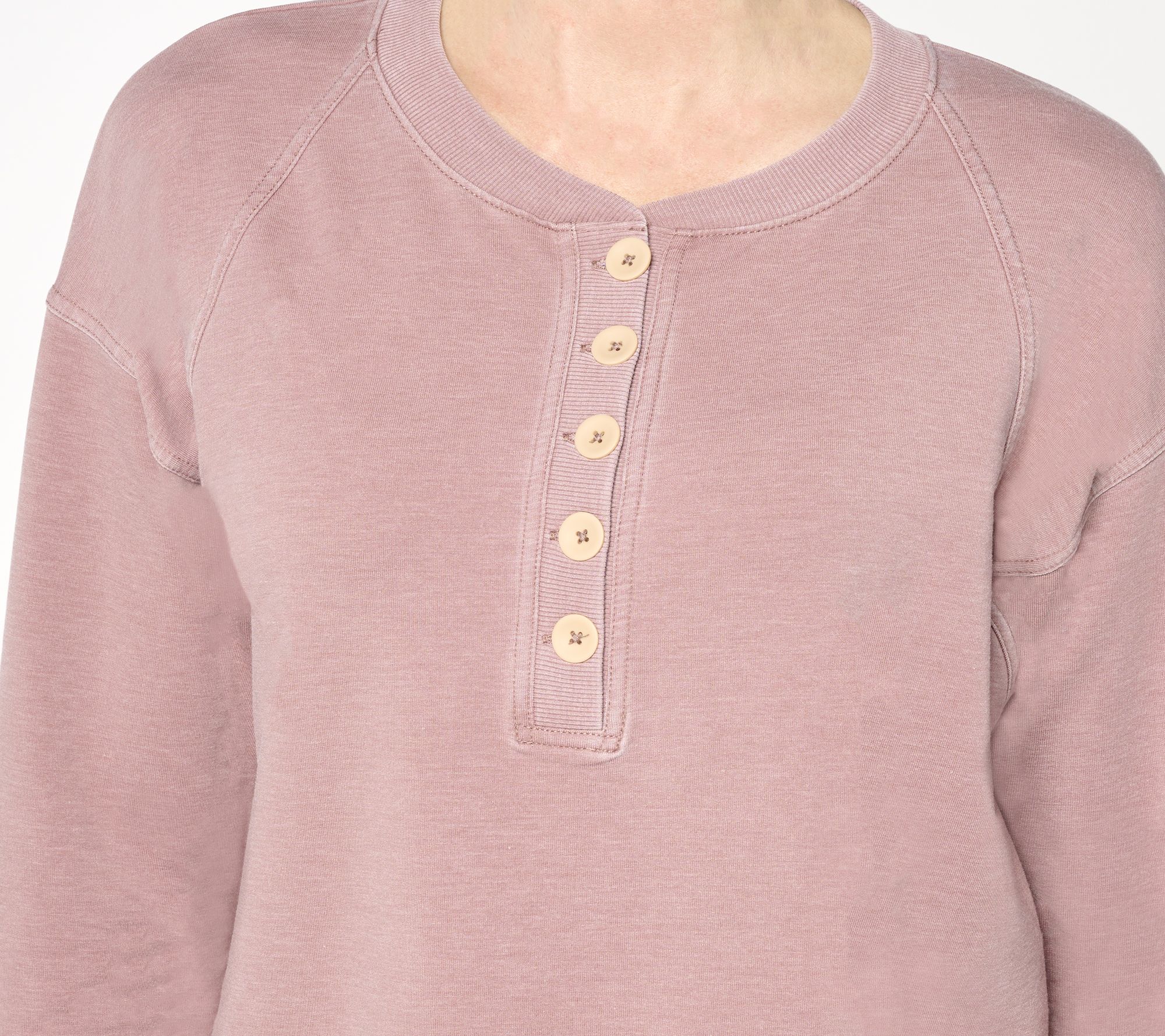 "As Is" AnyBody Beach Wash French Terry Ribbed Henley Pullover
