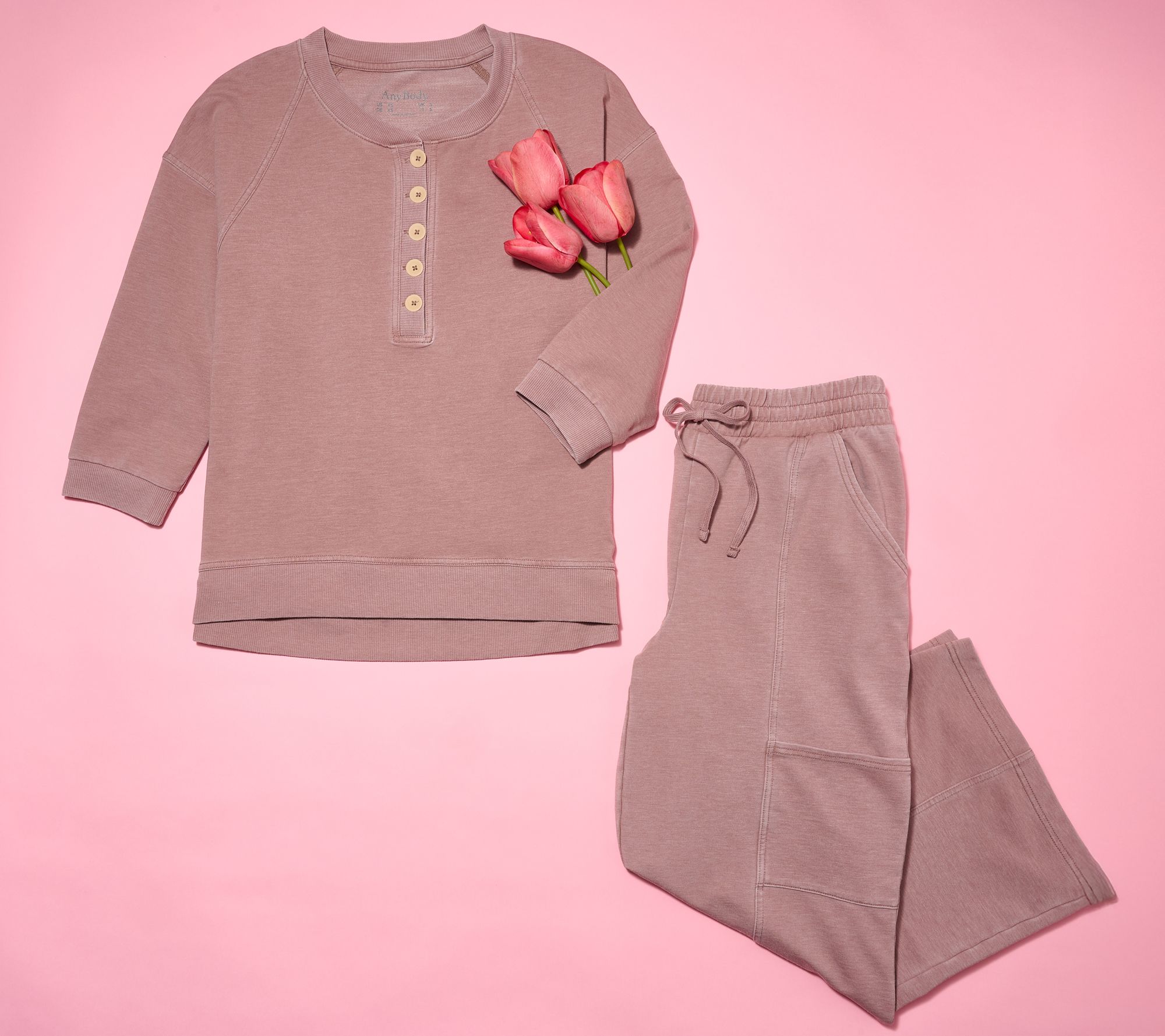 Sandy toes optional. A beachy, lived-in wash designates this French terry pullover for comfy, casual bliss by land or sea. From AnyBody®.