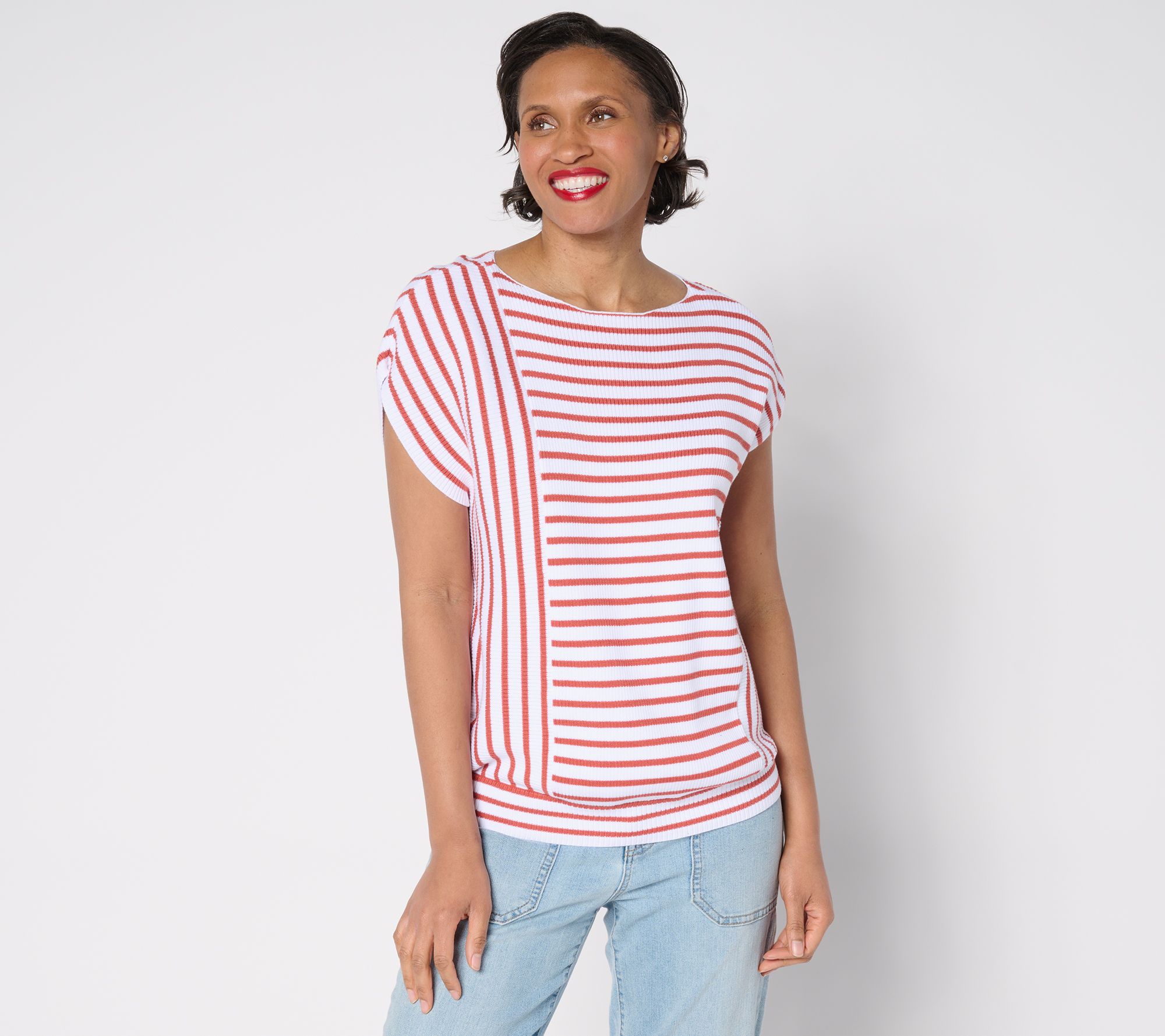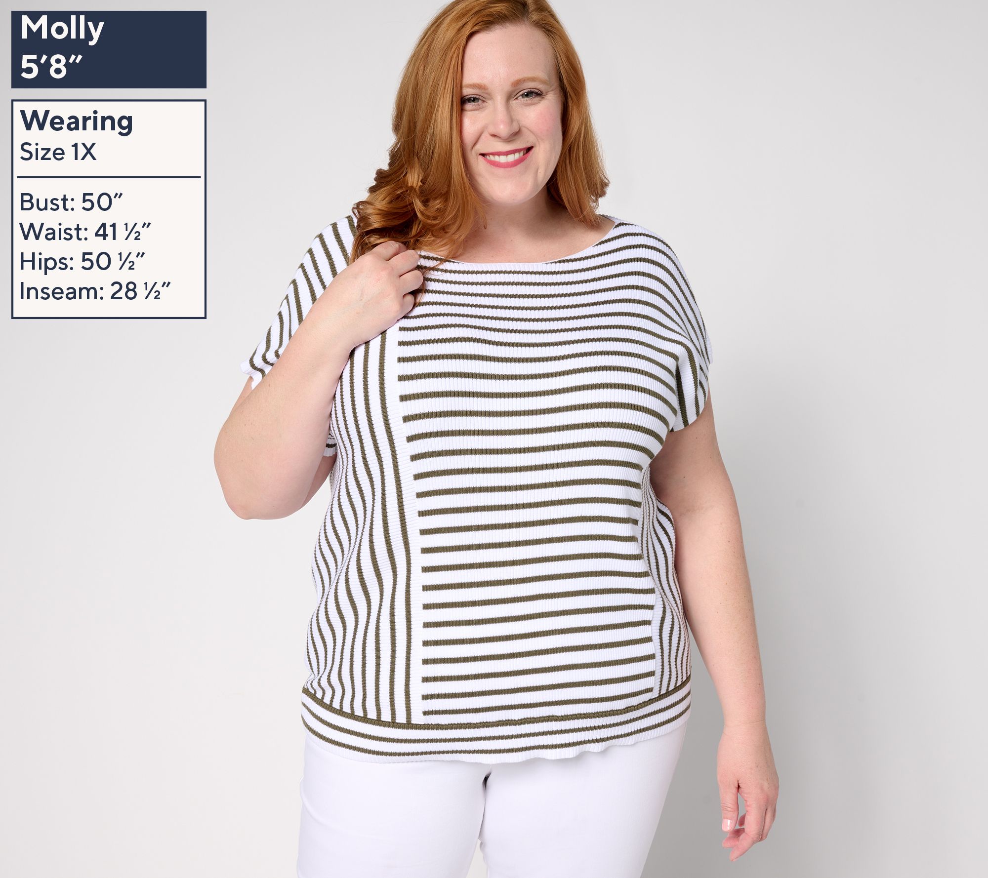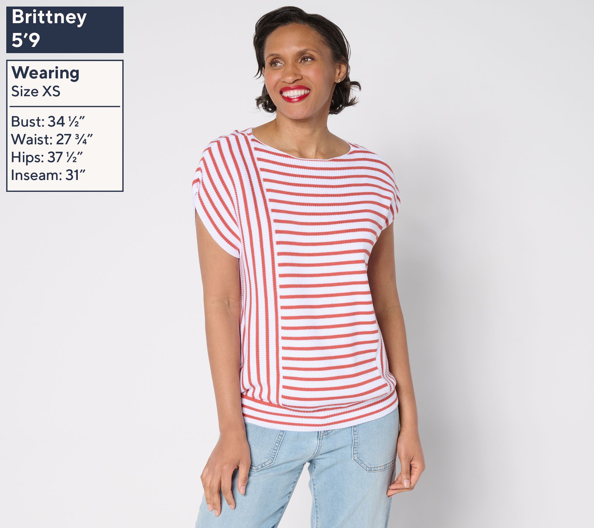 Just coasting? Meet your new go-to sweater for effortless, laid-back style. The easygoing fit and mixed stripe design make this dolman-sleeve sweater a staple piece for any casual-cool outing. From AnyBody®.
