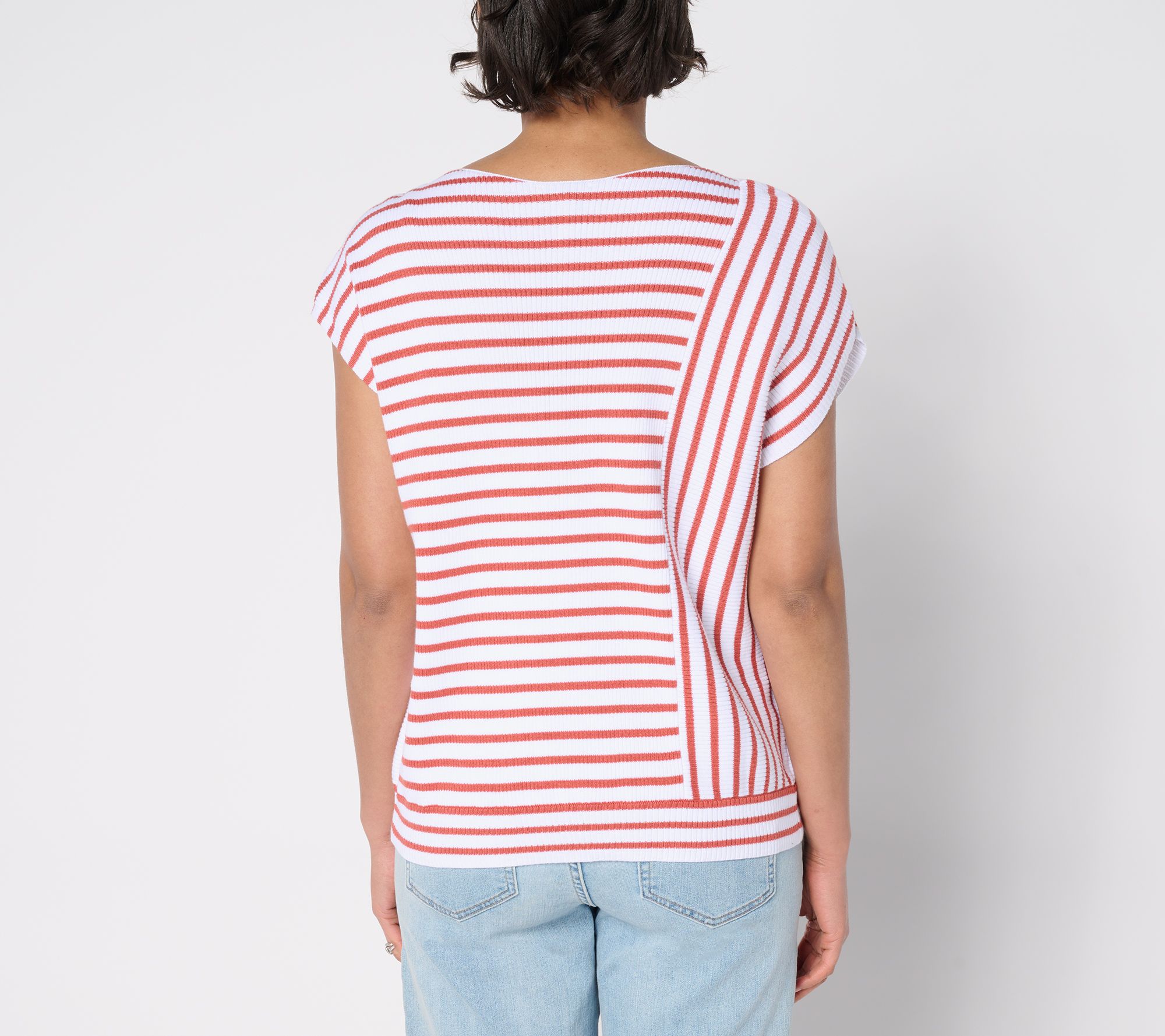 • Features: boatneck, dolman sleeves, ribbed hem, mixed stripe pattern