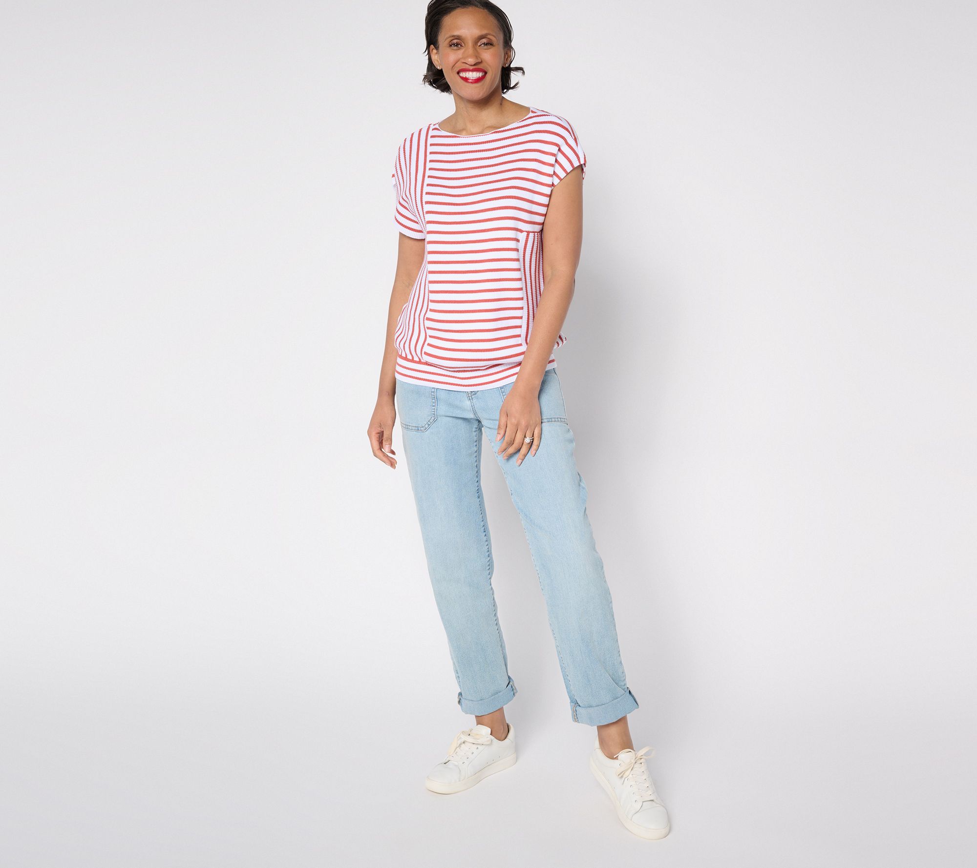 "As Is" AnyBody Boat Neck Mixed Stripe Cotton Sweater