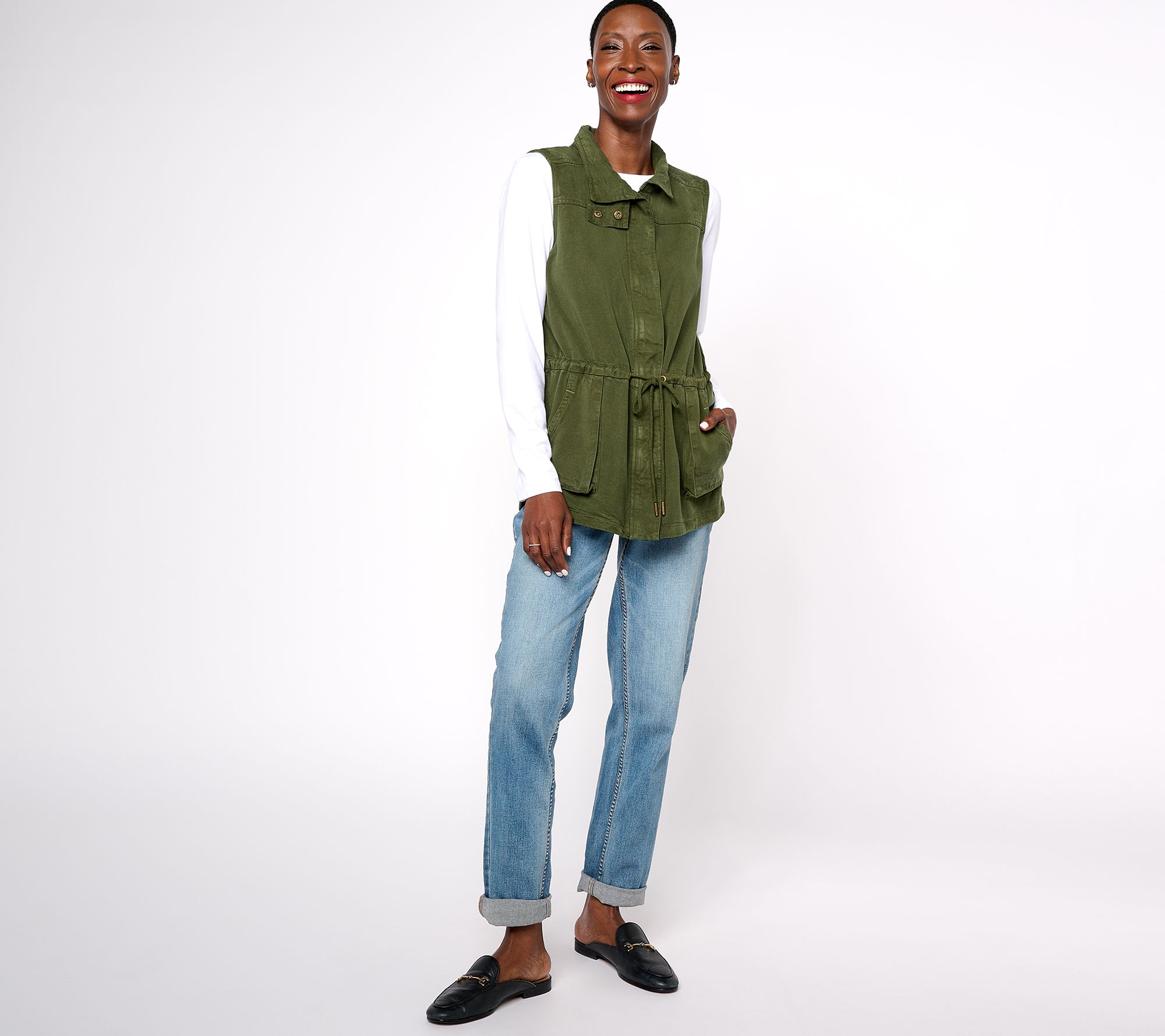 Bundle up in brisk weather with this versatile cargo vest -- designed with plenty of pockets for stashing stuff (and warming hands!) and a drawcord at the waist for a fab fit. From AnyBody®.