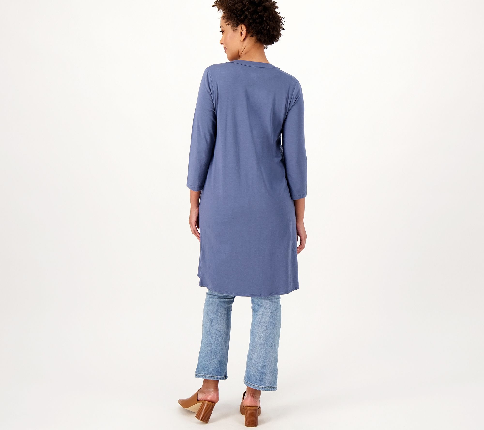 A layered look you'll love to live in, this long cardigan keeps you wonderfully warm while looking casually cool. Be sure to button up the comfy Cozy KnitTM fabrication -- a balanced blend of soft cotton and modal (with a touch of spandex). From AnyBody® Lounge and Sleepwear.
