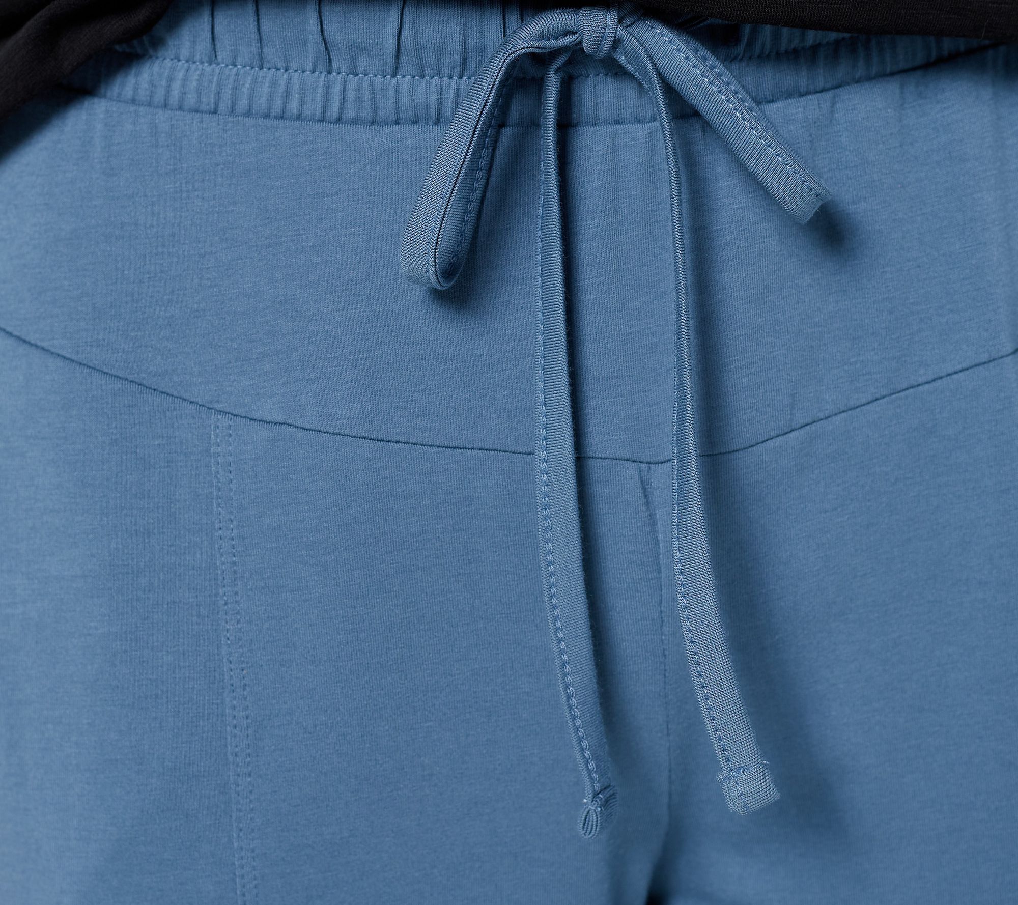 • Features: pull-on style, waistband with draw cord, seam detail down center front, tapered to ankle length