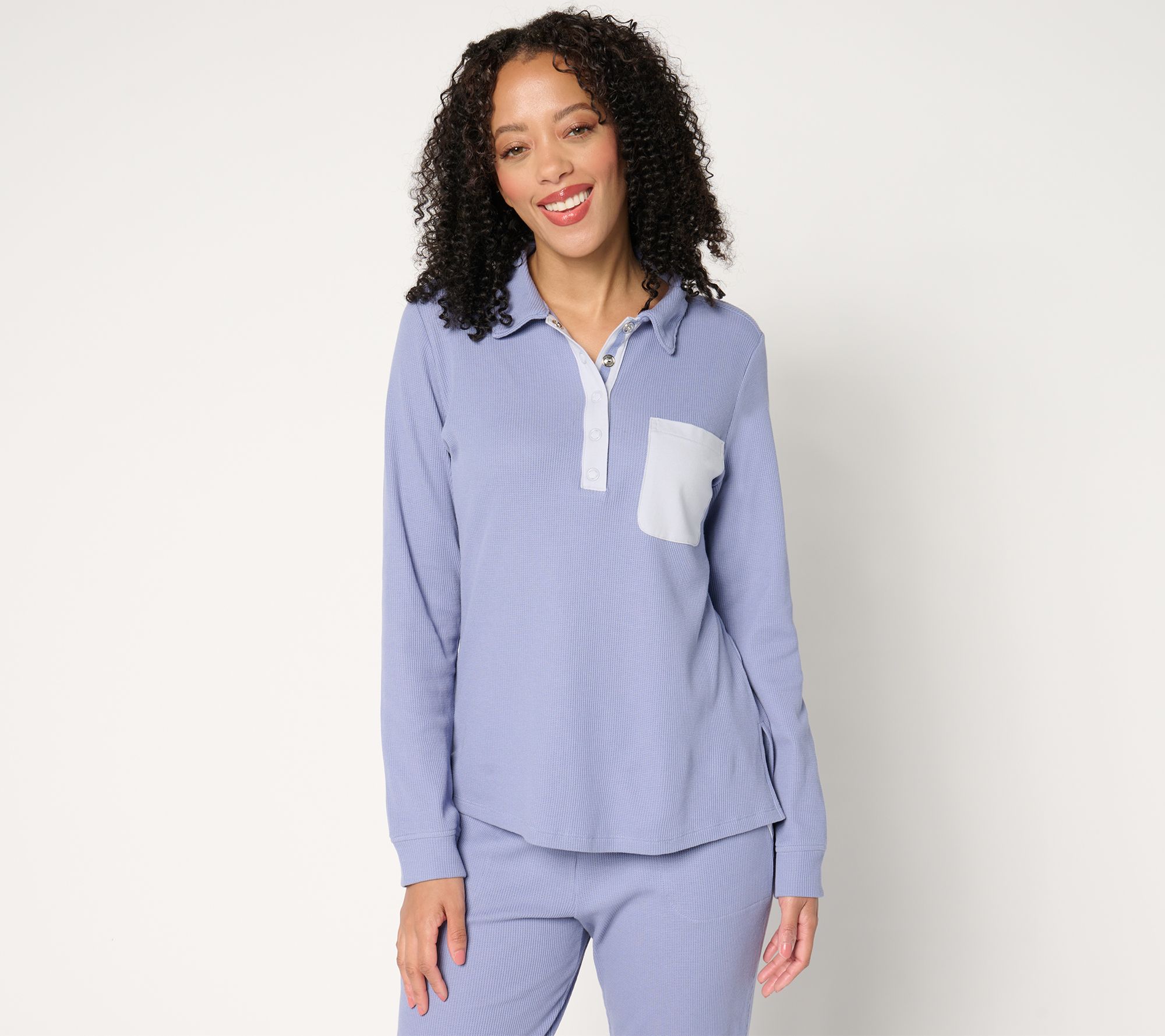 Refresh your casual attire with this Cozy Knit waffle henley. Featuring a trend-right color-blocked placket that adds a dash of flair, this top isn't just comfortable, it's stylish too. From AnyBody®.