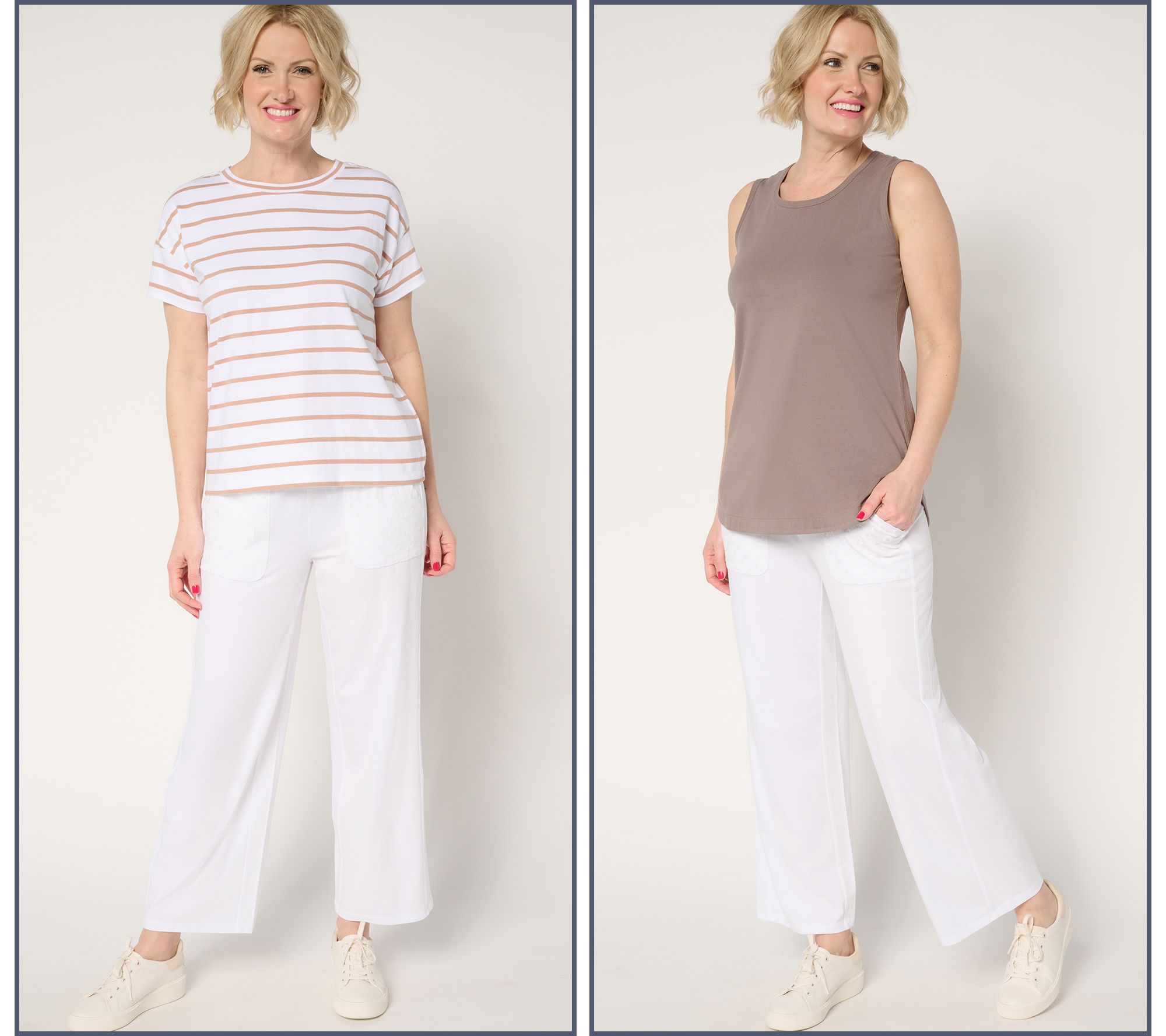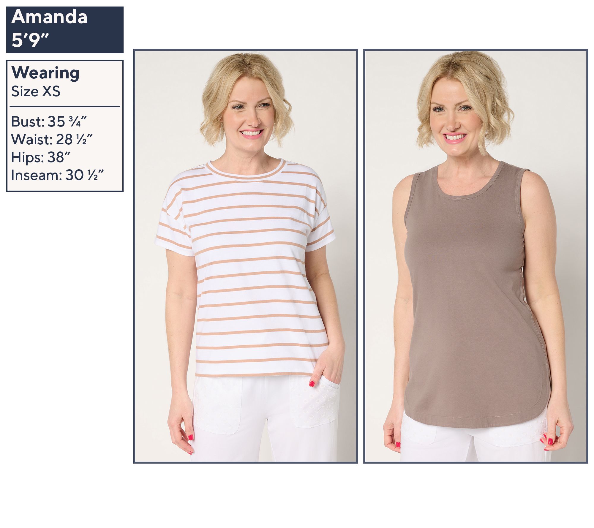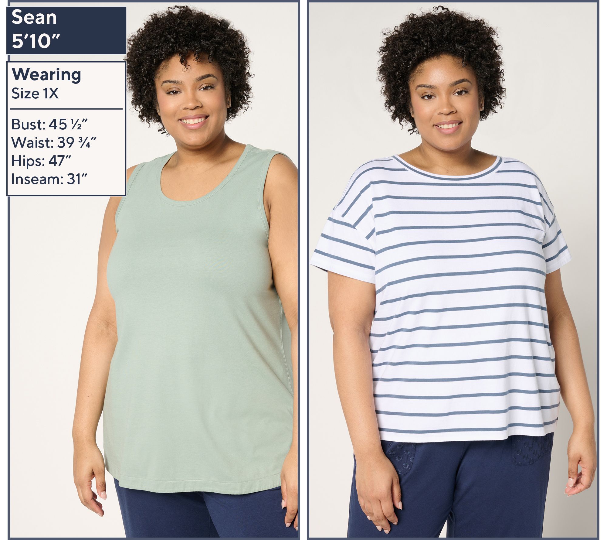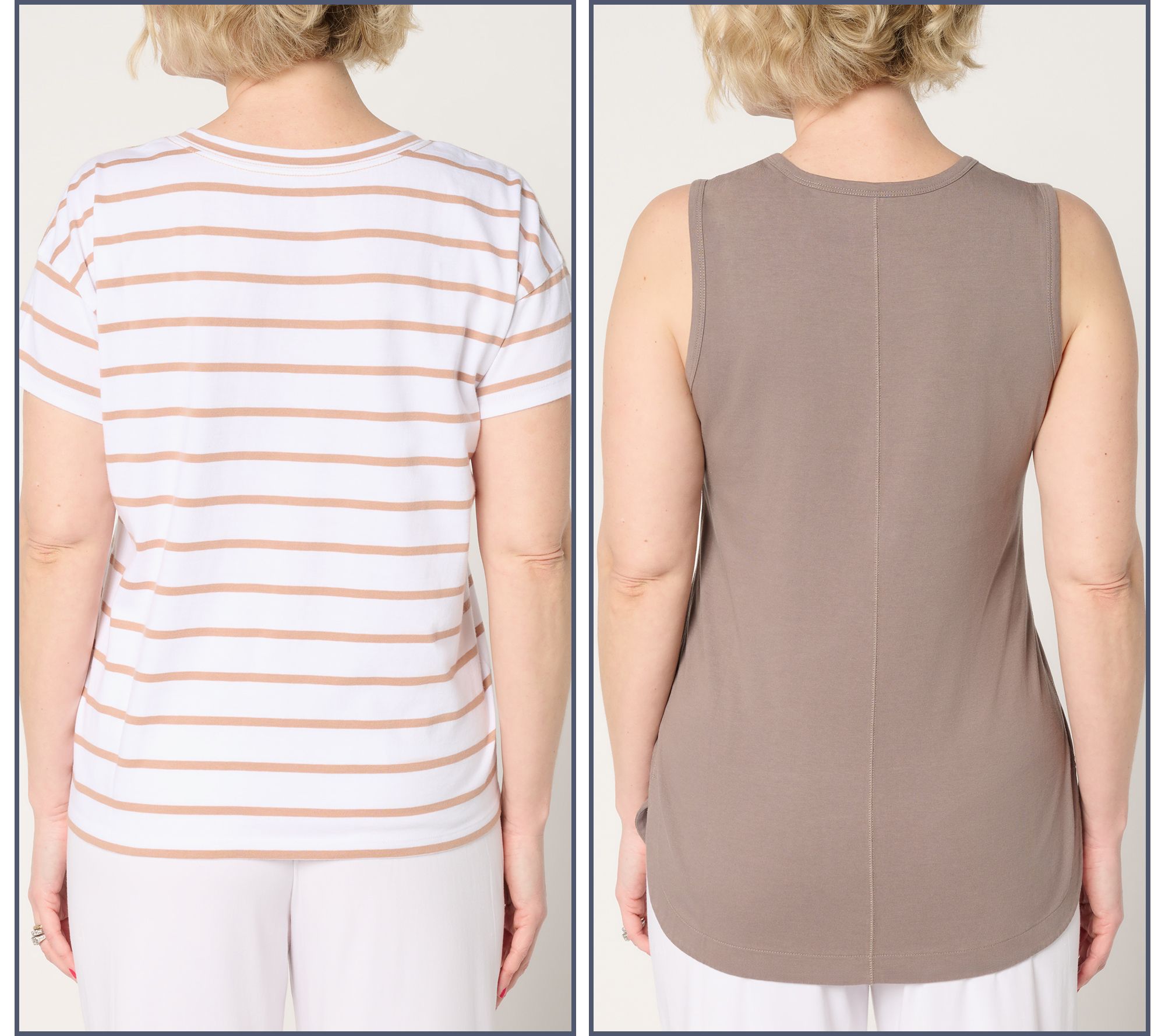 Double up on essential summer style with this cottony soft duo. The versatile set builds your warm-weather wardrobe with a solid tank and striped elbow-sleeve tee. Wear the tee with a pair of shorts for a casual vibe, or layer the tank under a jacket for a chic twist on cooler evenings. Just let your creativity flow as you mix and match these pieces to suit your mood and occasion! From AnyBody®.