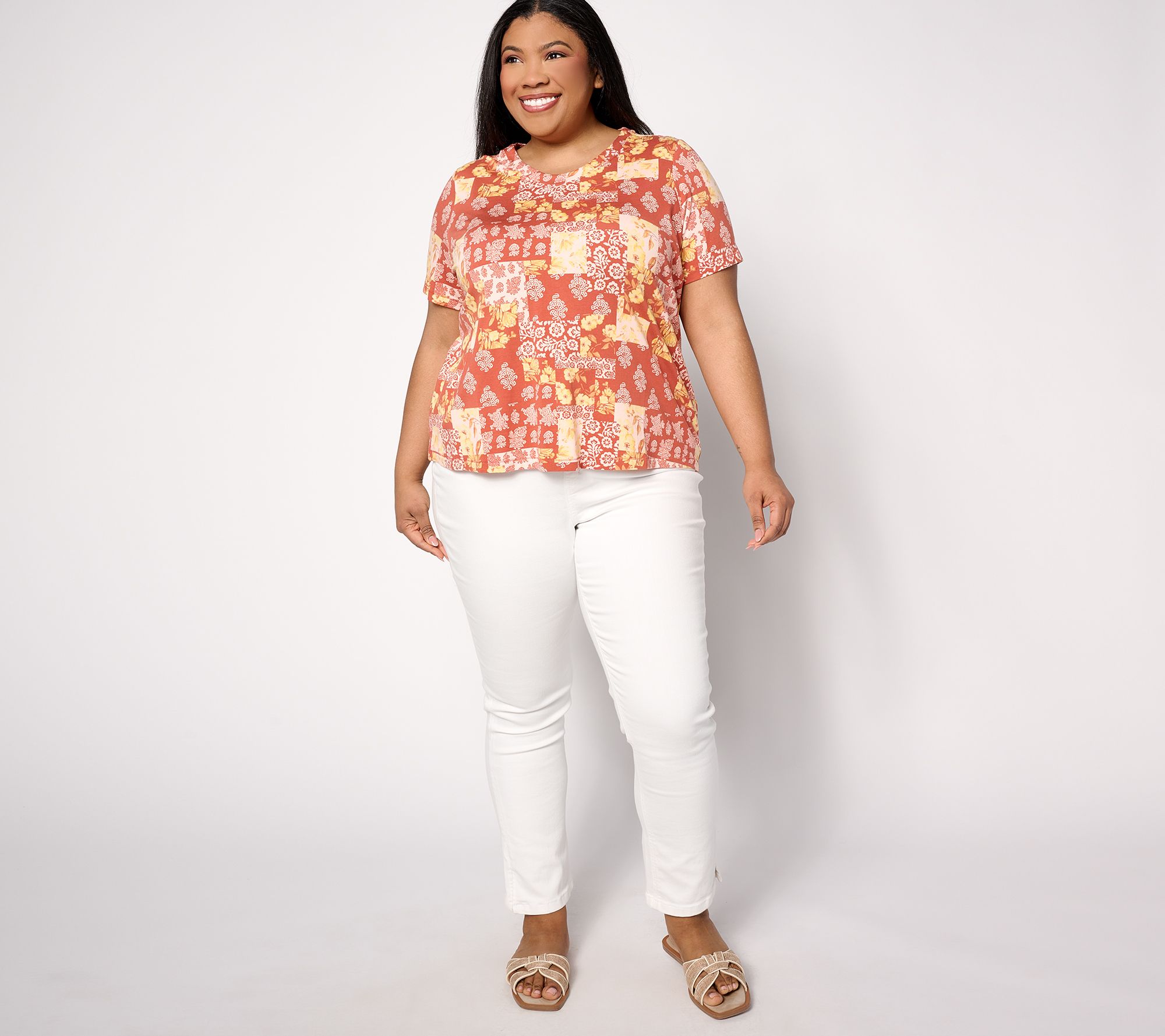 "As Is" AnyBody Lounge Cozy Knit Short Sleeve Printed Tee