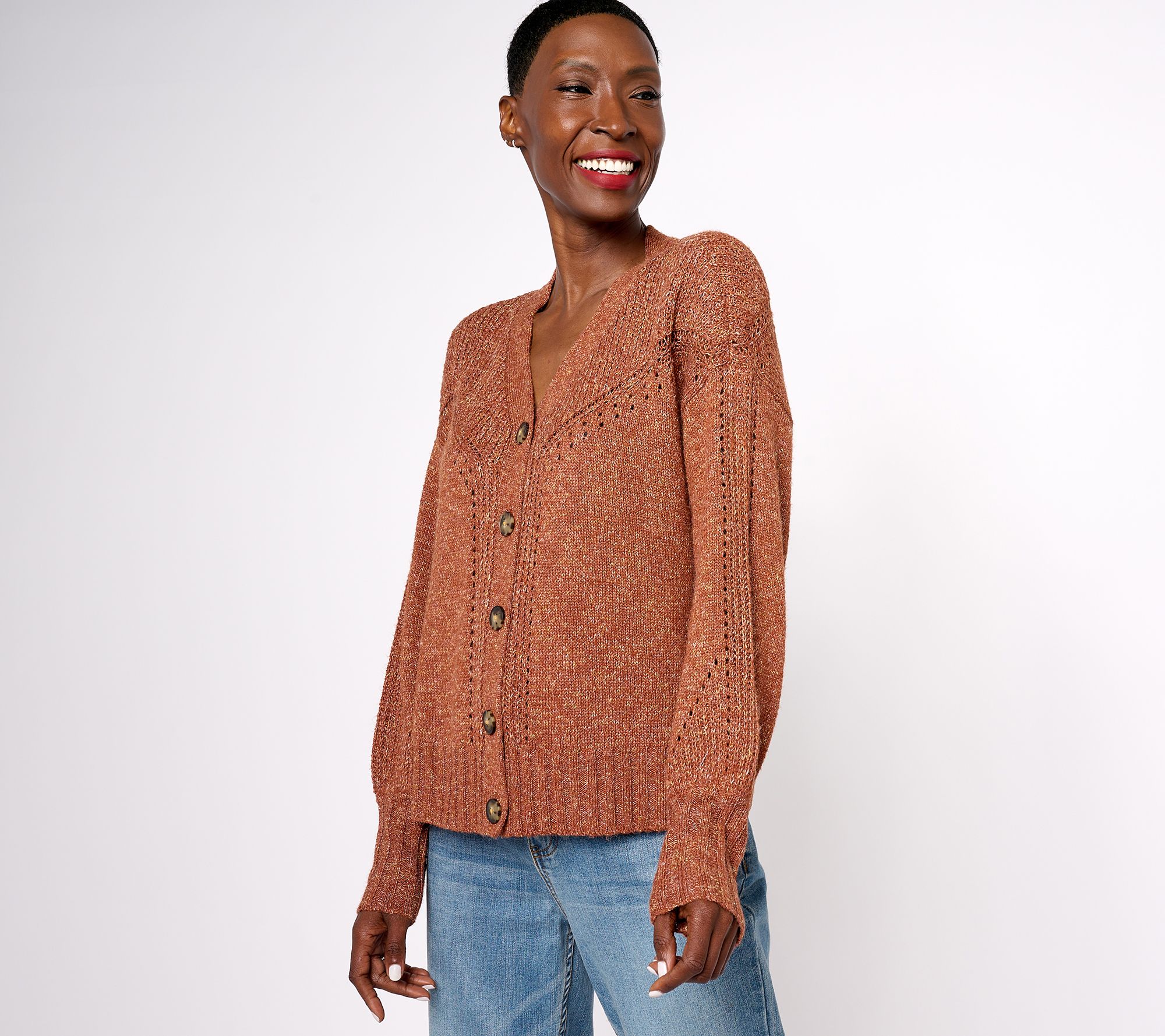 "As Is" AnyBody Novelty Stitch Button Front Cardigan