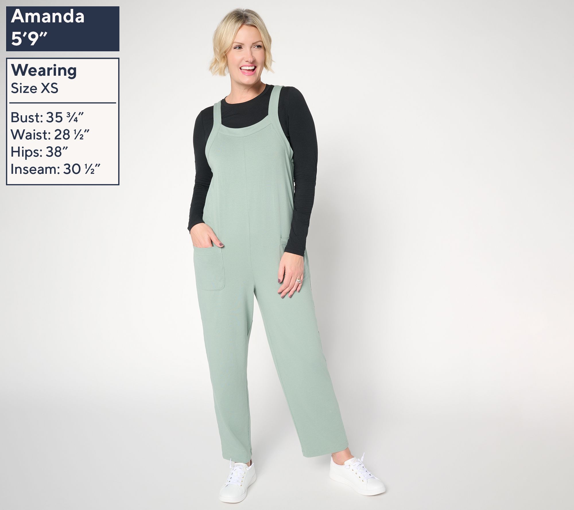 Weekend errands or catching up over coffee feel effortless in this knit jumpsuit and long-sleeve top set. The soft fabric and versatile styling pair comfort and polish, with a round-neck top layered over a square-neck, full-length tapered jumpsuit that moves with you from morning to evening plans. From AnyBody®.