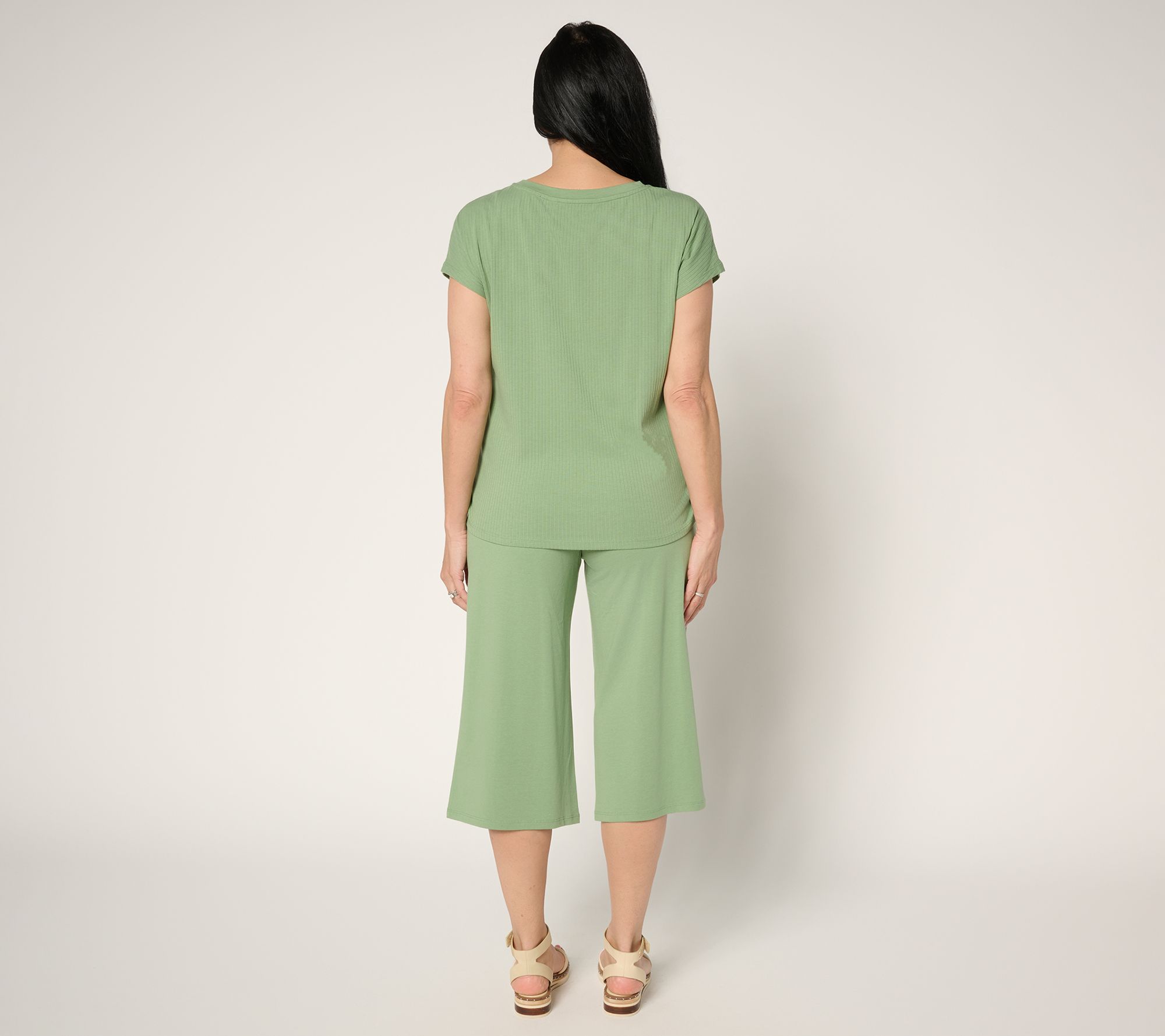 "As Is" AnyBody Petite Cozy Knit Top and Wide Leg Capri Set