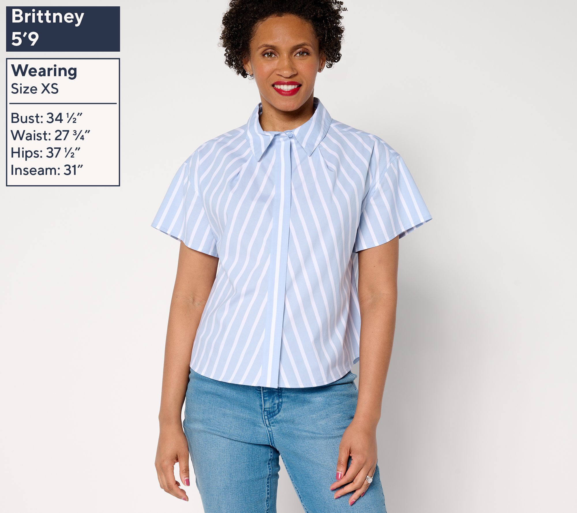 AnyBody® reimagines a wear-on-repeat closet staple -- the button-down shirt -- and it's definitely got our attention! The softly pleated neckline, extended shoulder, and unexpected angled striping add a refreshing revision and instant polish, whether paired with denim for casual days or trousers for on-the-clock duty. And the relaxed fit? It's exactly what we need to comfortably power through busy days. From AnyBody®.
