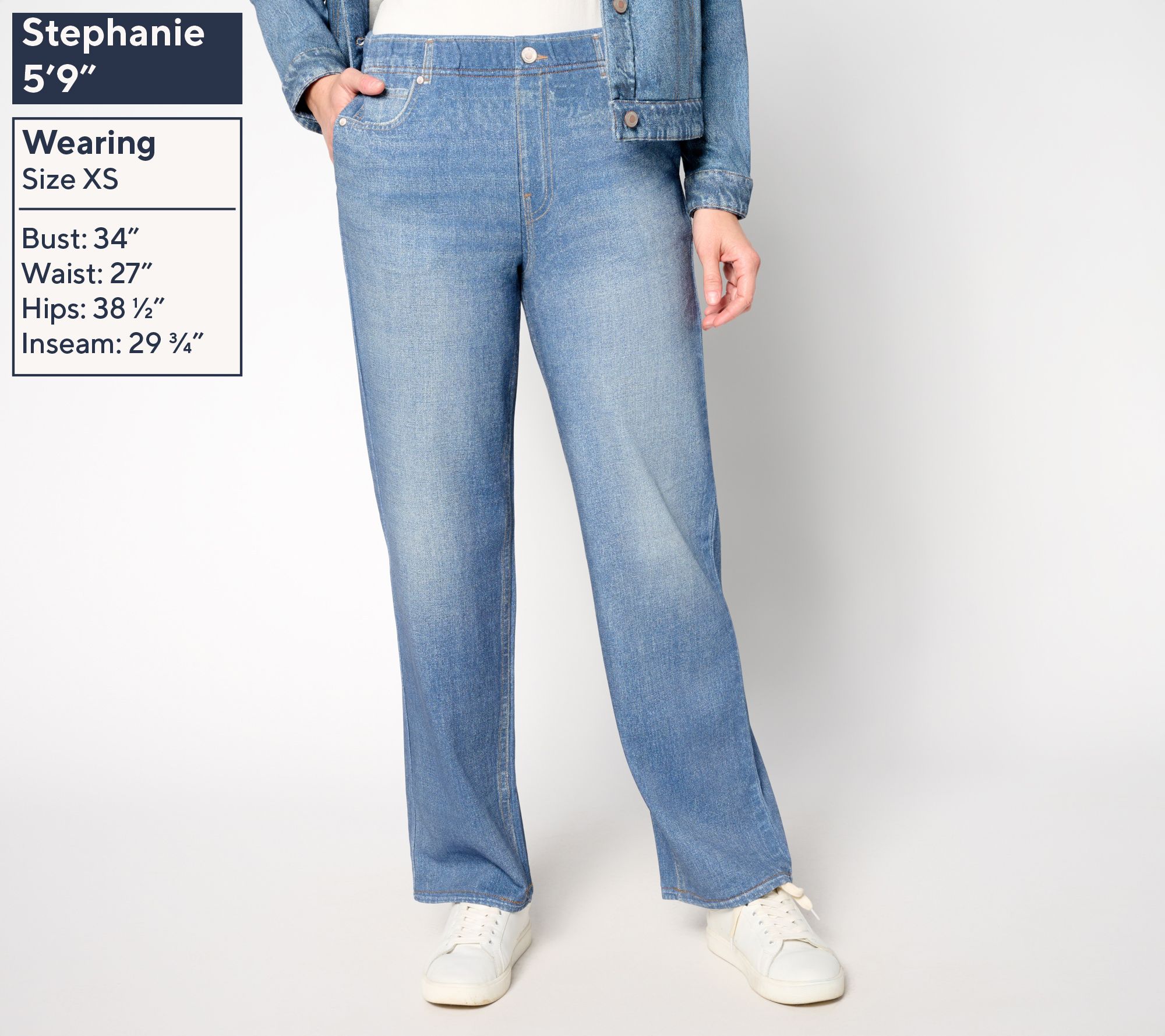 • Fabrication: French terry knit, digitally printed to resemble denim