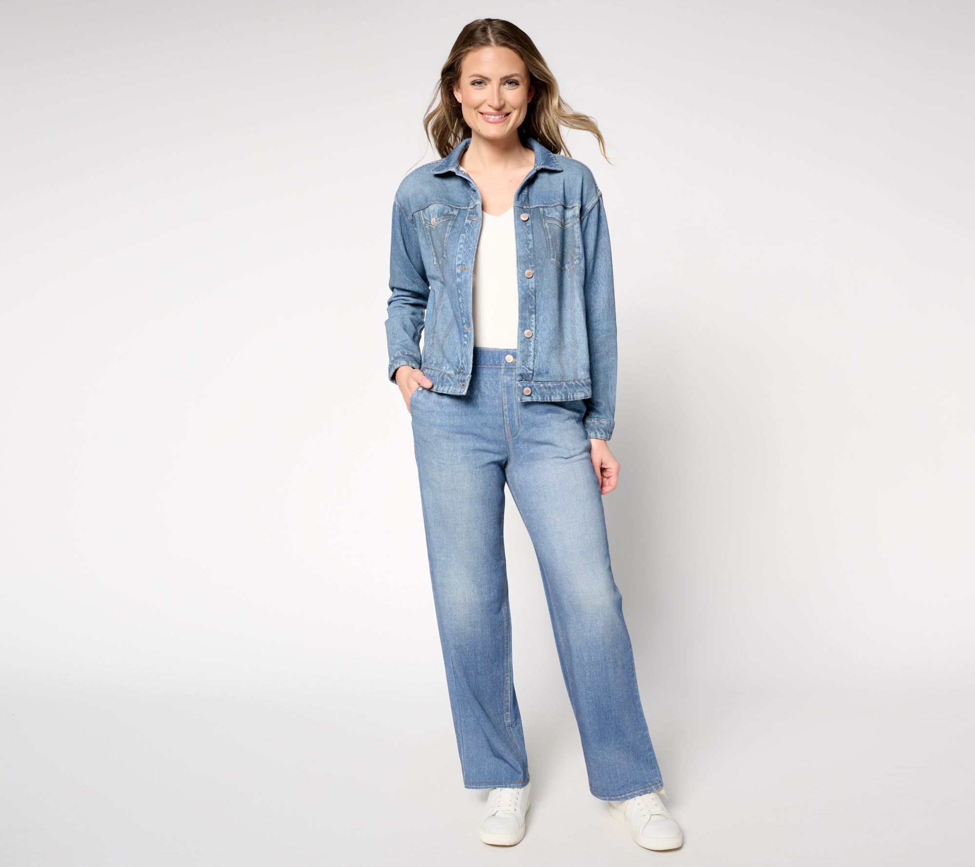 One look in the mirror, and these super-cute denim-effect French terry pants might fool even you into thinking you're wearing traditional woven denim. That is, until you do a spin, take a seat, or bend to pick something up and notice they feel better than your favorite sweats. Permission to flaunt the versatile wide-leg style everywhere you would your daily denim. (We won't tell!) From AnyBody®.