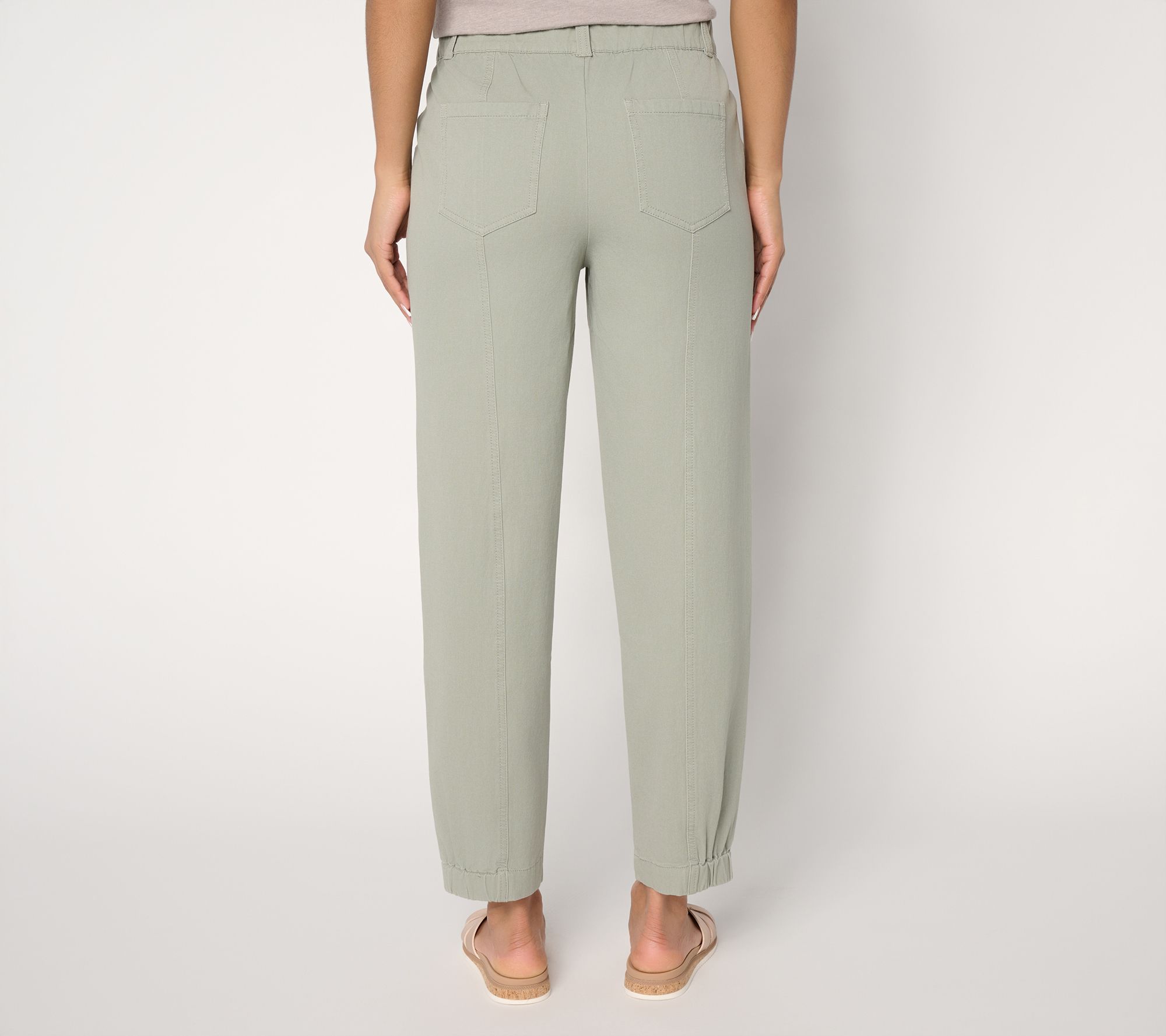 Busy day? Don't panic. These twill ankle pants make feeling comfy yet looking fresh a snap. The twill all-stretch fabric moves with you (not against you) for easy all-day wear -- while the front and back center seaming and gentle pleating around the elastic leg opening add polished modern appeal. Casual-cute? It's a thing. From AnyBody®.
