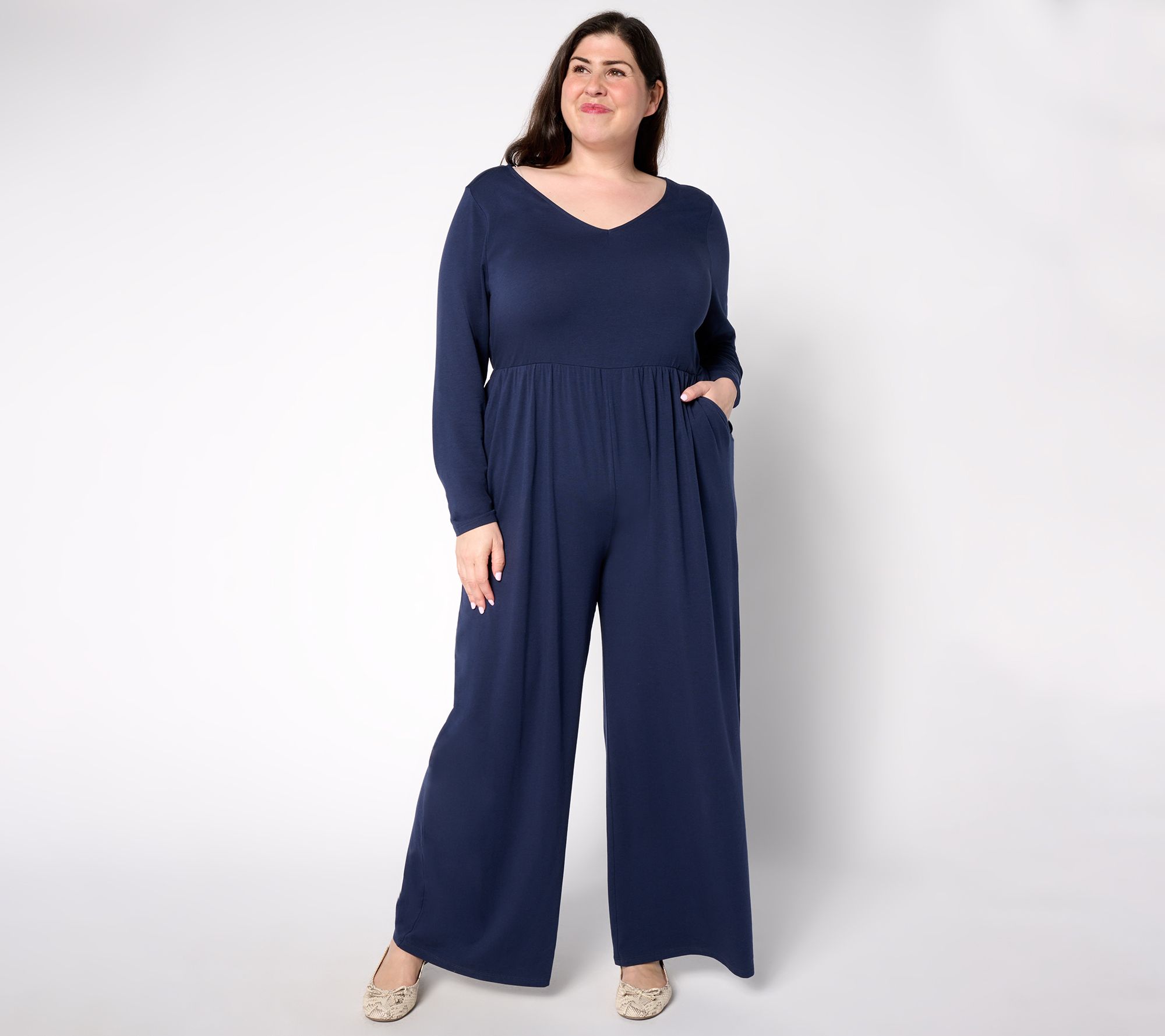 When's the right time for a jumpsuit? Any time you want -- for dinner and a movie, a shopping run, or a cozy day at home -- when it's this jumpsuit in AnyBody's beloved Cozy KnitTM, a stretch-infused blend of cotton and modal. Add accessories to the trend-right full-leg style and you're effortlessly, stylishly out the door (or onto the sofa) in minutes. From AnyBody®.