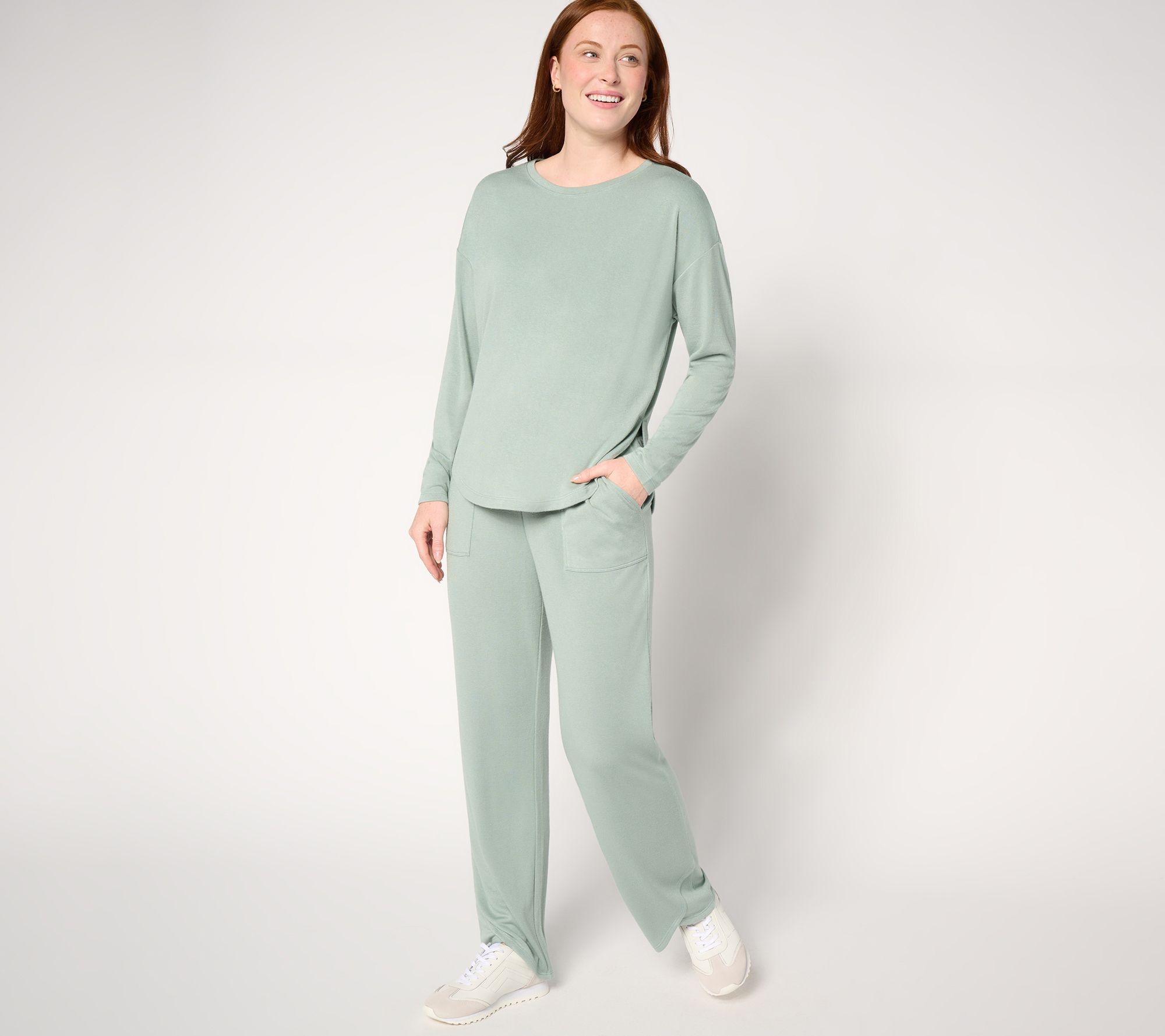 Just another pair of pull-ons? We think not! The adorably chic tulip hem at the leg bottom of these plush knit (and pocketed!) picks is just the design deet that takes them from basic to well beyond! From These AnyBody® Lounge and Sleepwear.