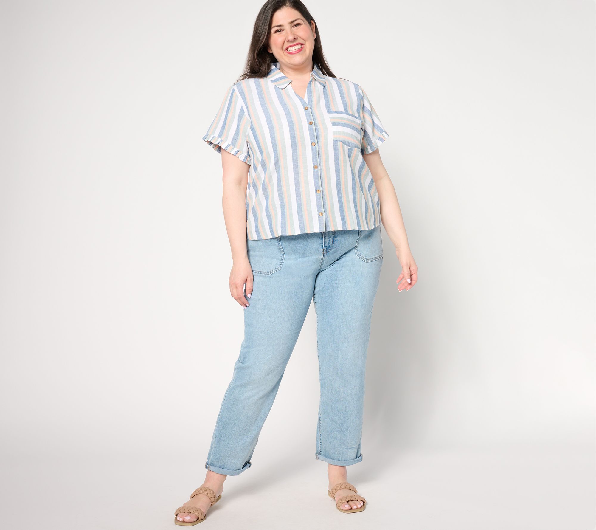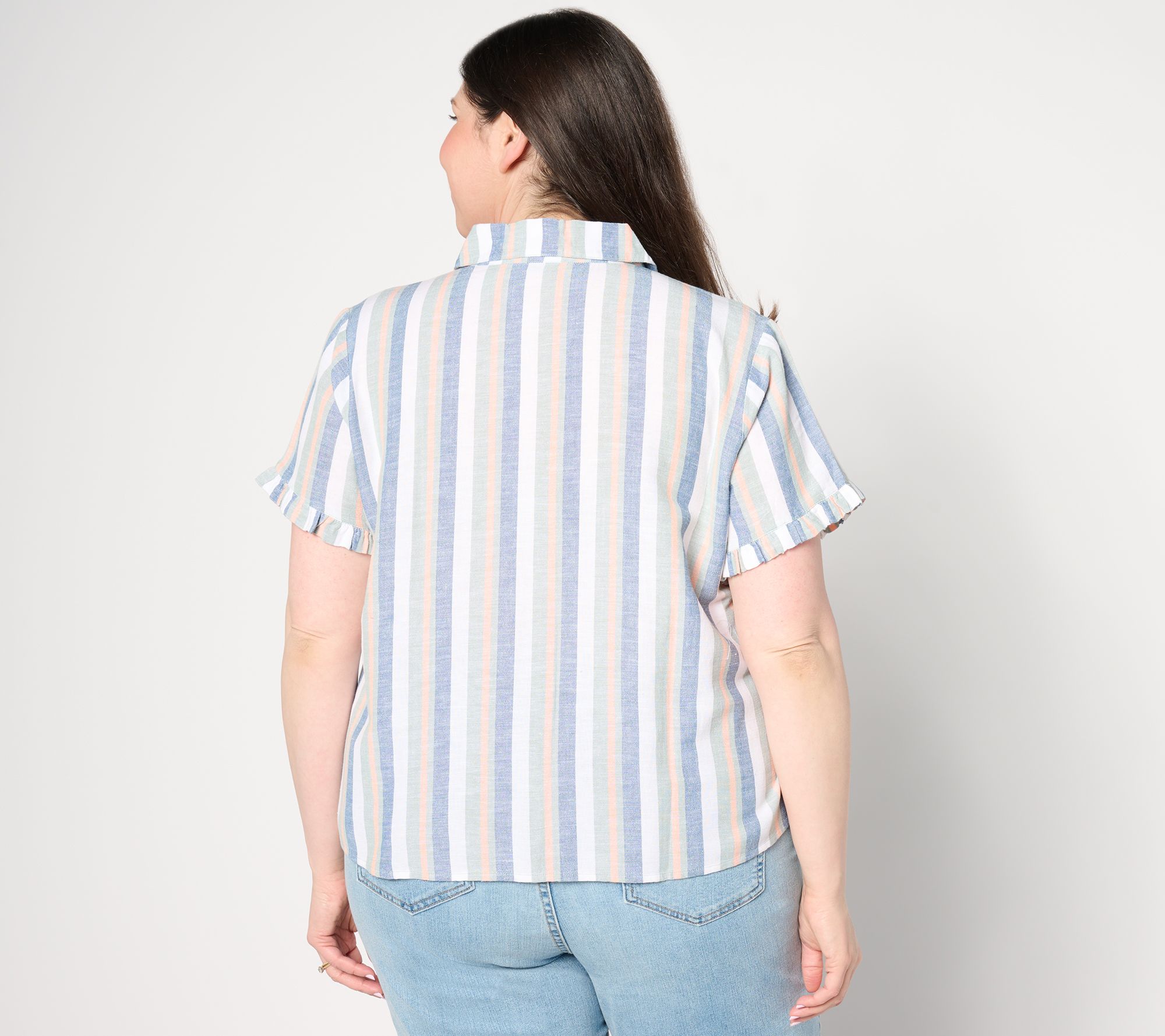 "As Is" AnyBody Short Sleeve Button Front Linen Blend Camp Shirt