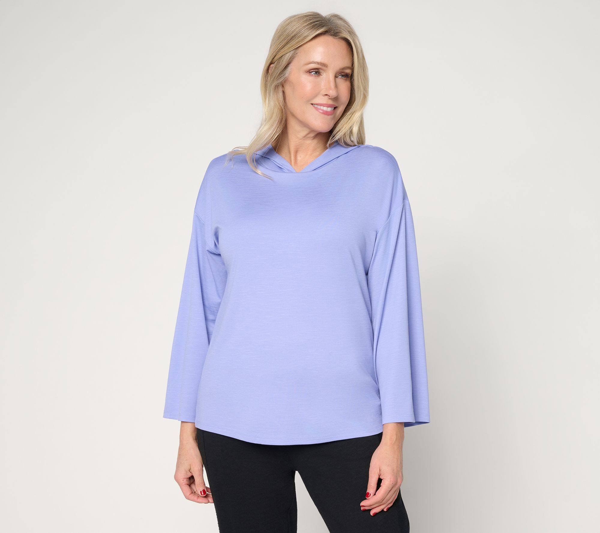 Whether you're unwinding after a workout or layering up for weekend outings, this knit hoodie brings relaxed style with an extra touch of comfort. A slim-fit bra layer offers light support and modesty, while the drop shoulders and bracelet-length sleeves let you move freely through your day. From Anybody®.