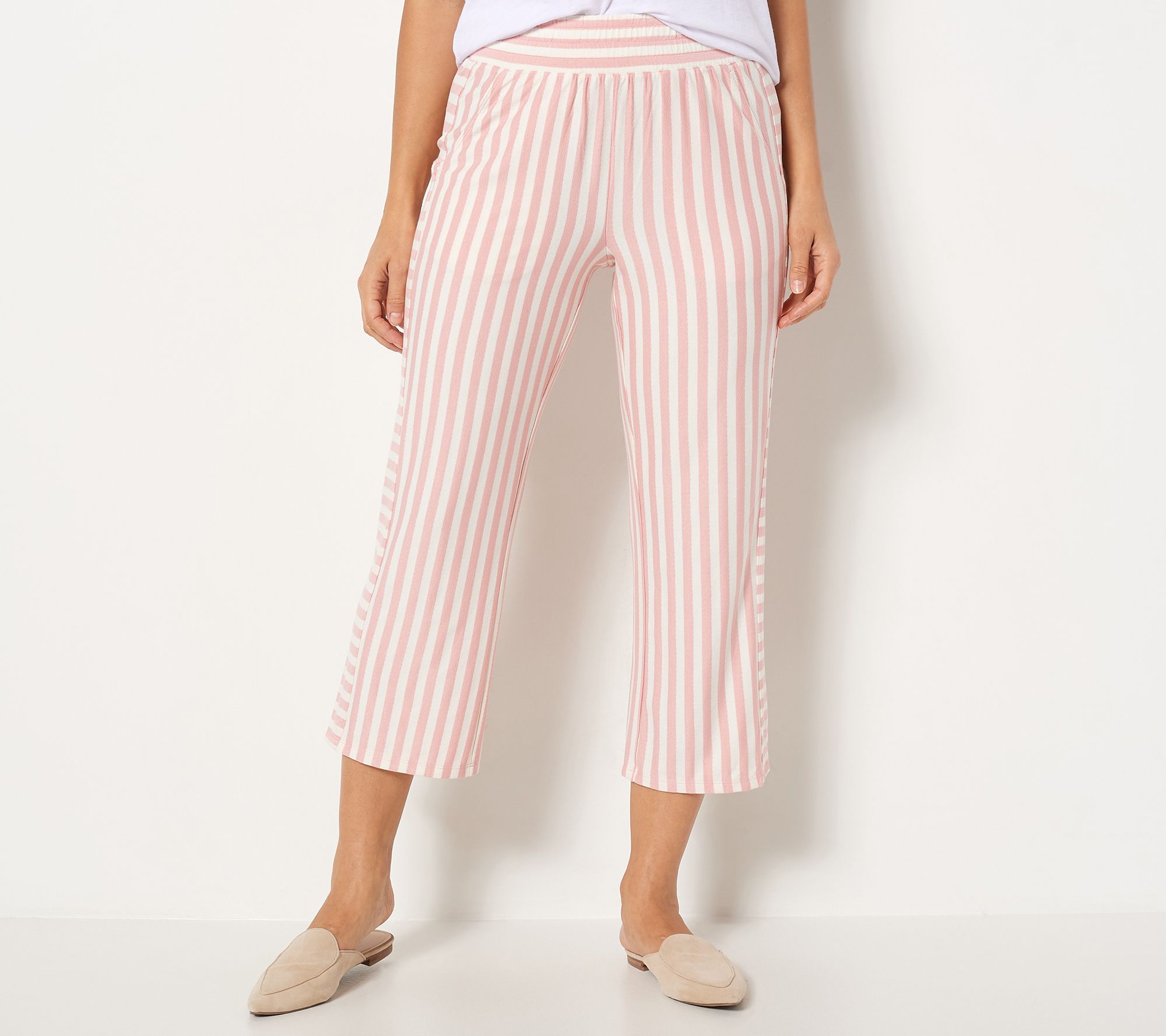 Pair these striped pull-on pants with a tucked-in graphic tee and your best flats and suddenly, you're rocking that casually chic look that's so in right now. From AnyBody® Lounge and Sleepwear.