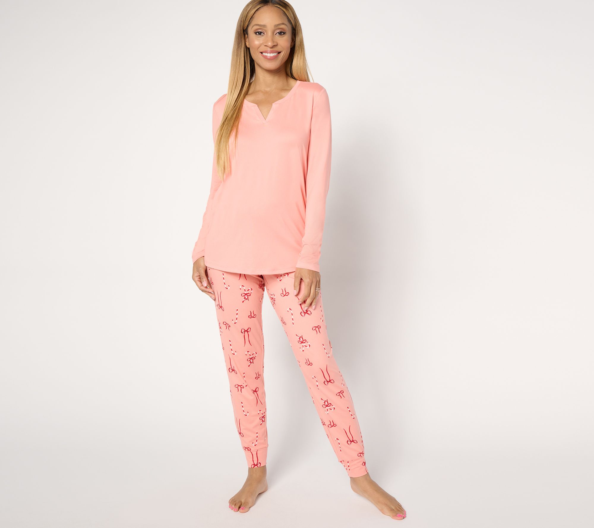 Catching some zzz's or catching up on your latest streaming obsession? Whatever mode you're in, match the mood with this blissful Lush Jersey sleep set. Enjoy restful nights or lazy mornings in a top-and-jogger combo that's as cute as it is comfy. From AnyBody® Lounge and Sleepwear.