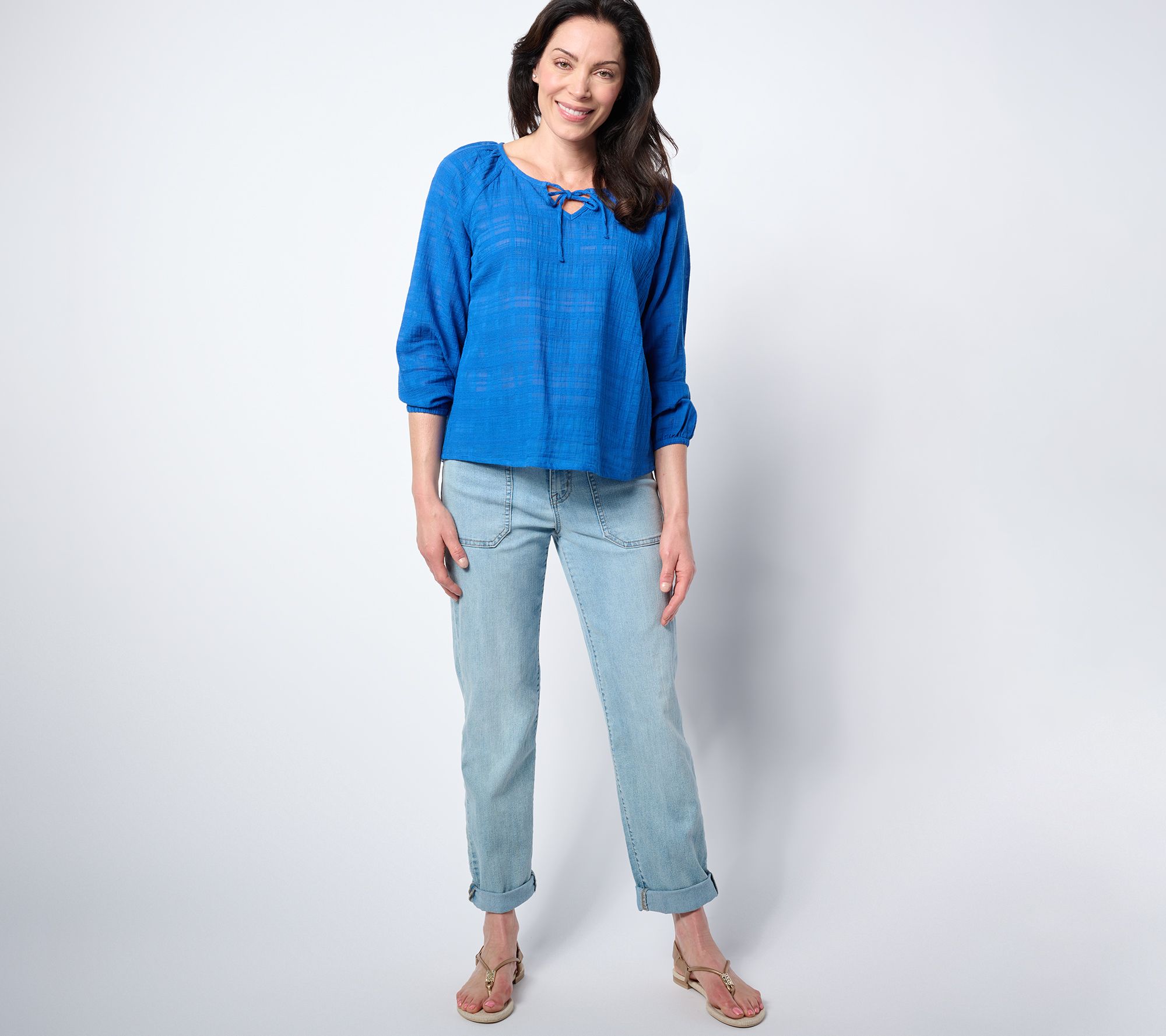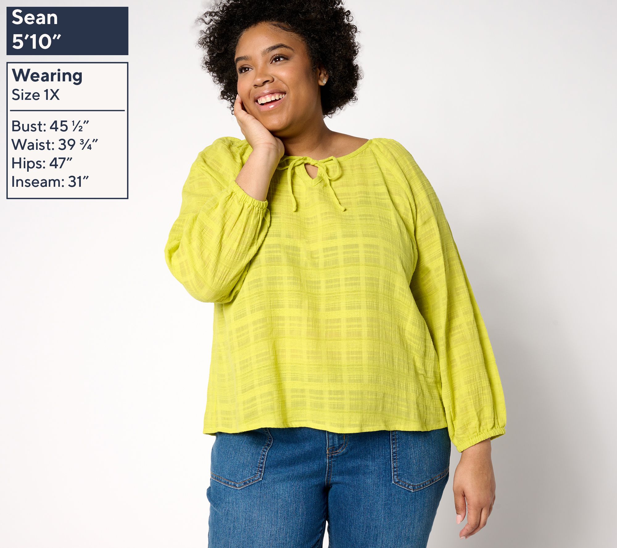 When chilly temps in air-conditioned offices, restaurants, and movie theaters are too much to take, it's good to know you've got this all-cotton textured top to turn to. Featuring long balloon-style sleeves and a sweet tie at the neckline, it's the perfect pick to keep you looking polished while providing much-needed coverage. Heading back out into summery heat? Just zhuzh the sleeves to feel the breeze. From Anybody®.
