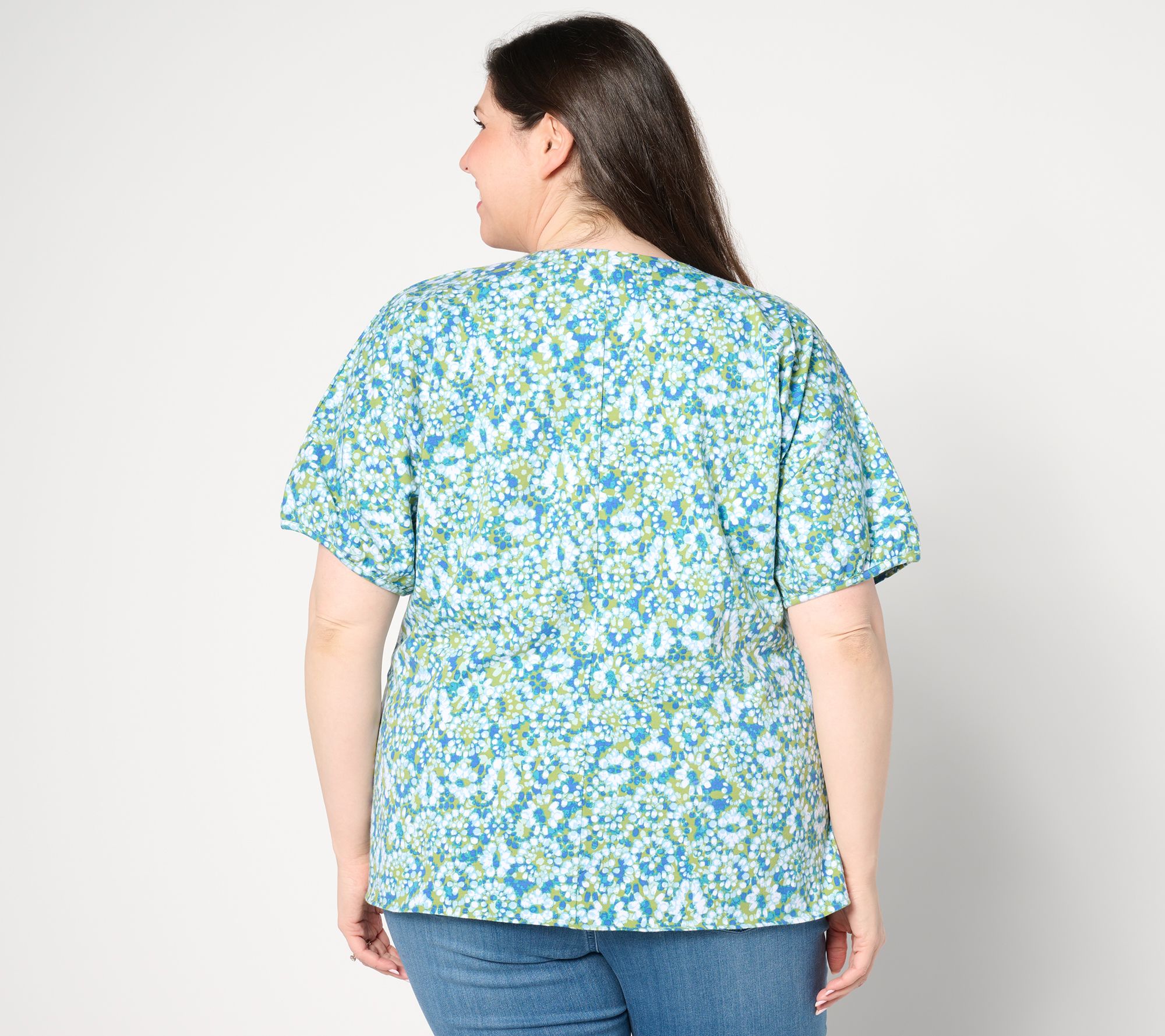 "As Is" AnyBody V-Neck Short Sleeve Printed Top