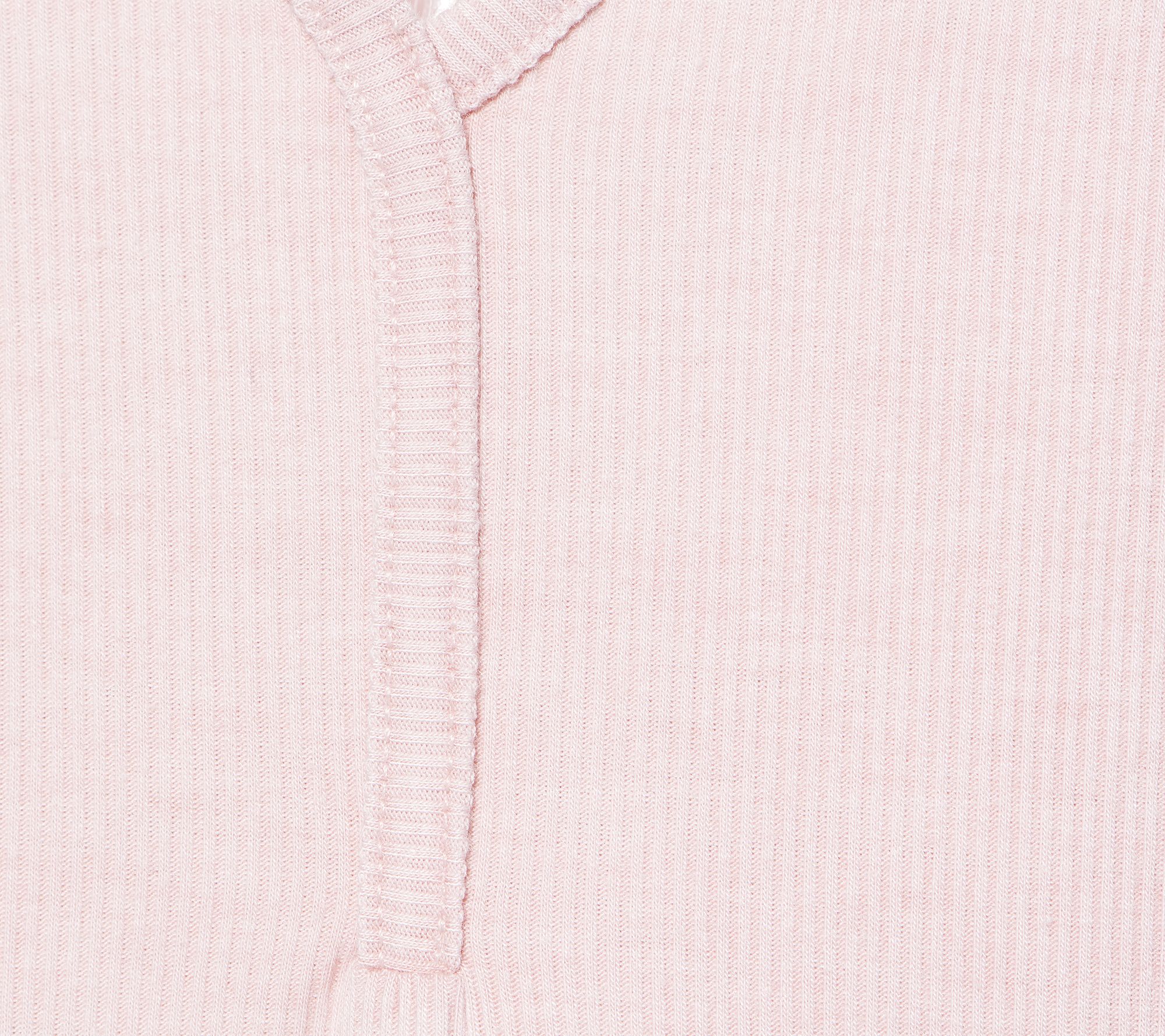 • Features: ribbed fabric, lapped-over center-front panel, 3/4-length sleeves