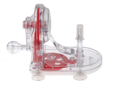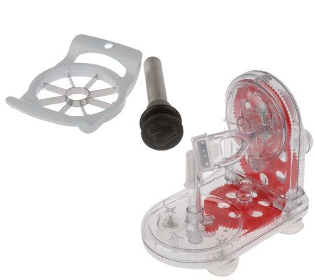 Peel apples cleanly and effortlessly with the Apple Pro Peeler. Set the fruit on the spike holder, and the stainless steel blade easily removes the skin. Four suction grip feet offer stability. The slicer/corer makes it easy to prepare apples for cakes, pies, or snacks--it even features a convenient ejector. Polypropylene plastic/stainless steel construction. Clean with warm, soapy water and cloth.