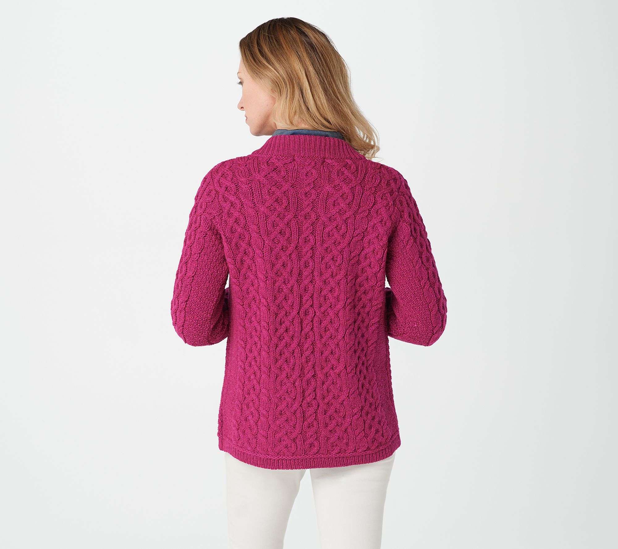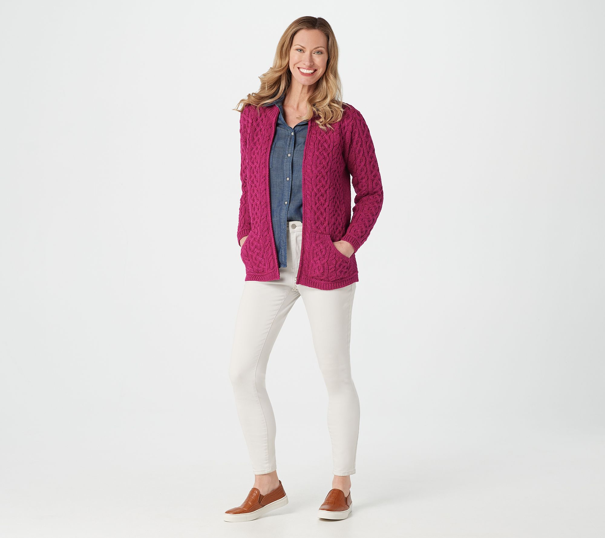 "As Is" Aran Crafts Merino Wool Zip-Front Cardigan