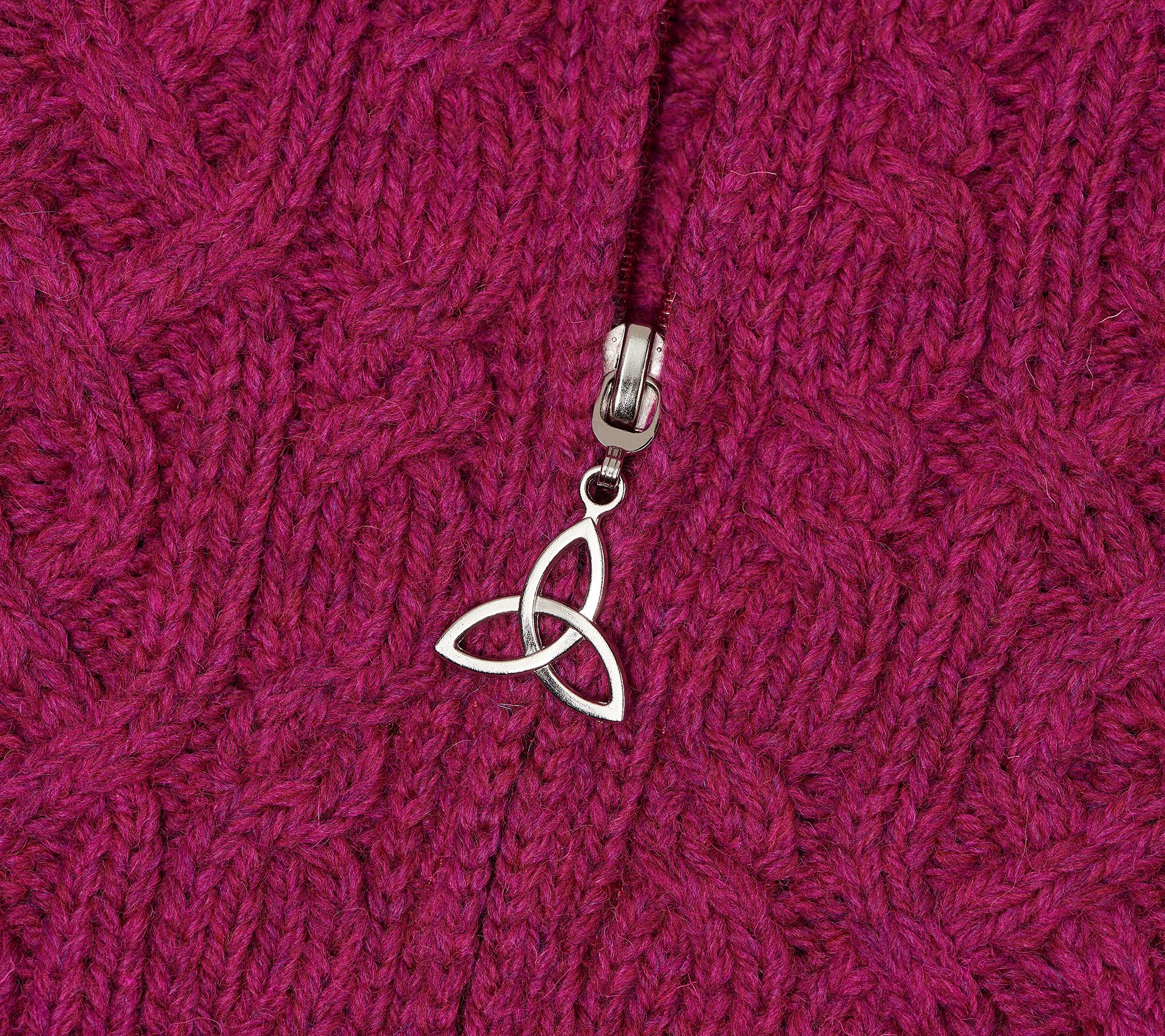 • Features: zipper front, long sleeves, front pockets, Celtic knot cable-knit pattern