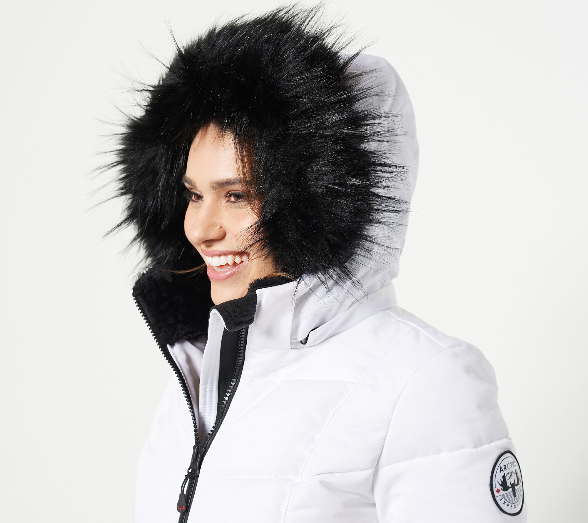 It's the best in snow. Classic, stylish, and soooo warm, this chevron-quilted down parka (with a chin guard and faux fur-lined collar, btw!) is your ultimate blustery-weather BFF. From Arctic Expedition.