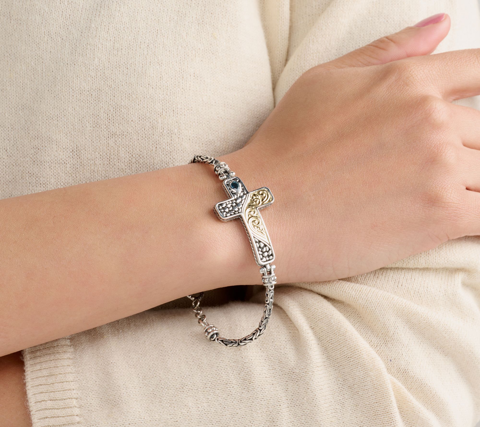 "As Is" Artisan Crafted by Robert Manse Cross Gem 18K & SS Bracelet