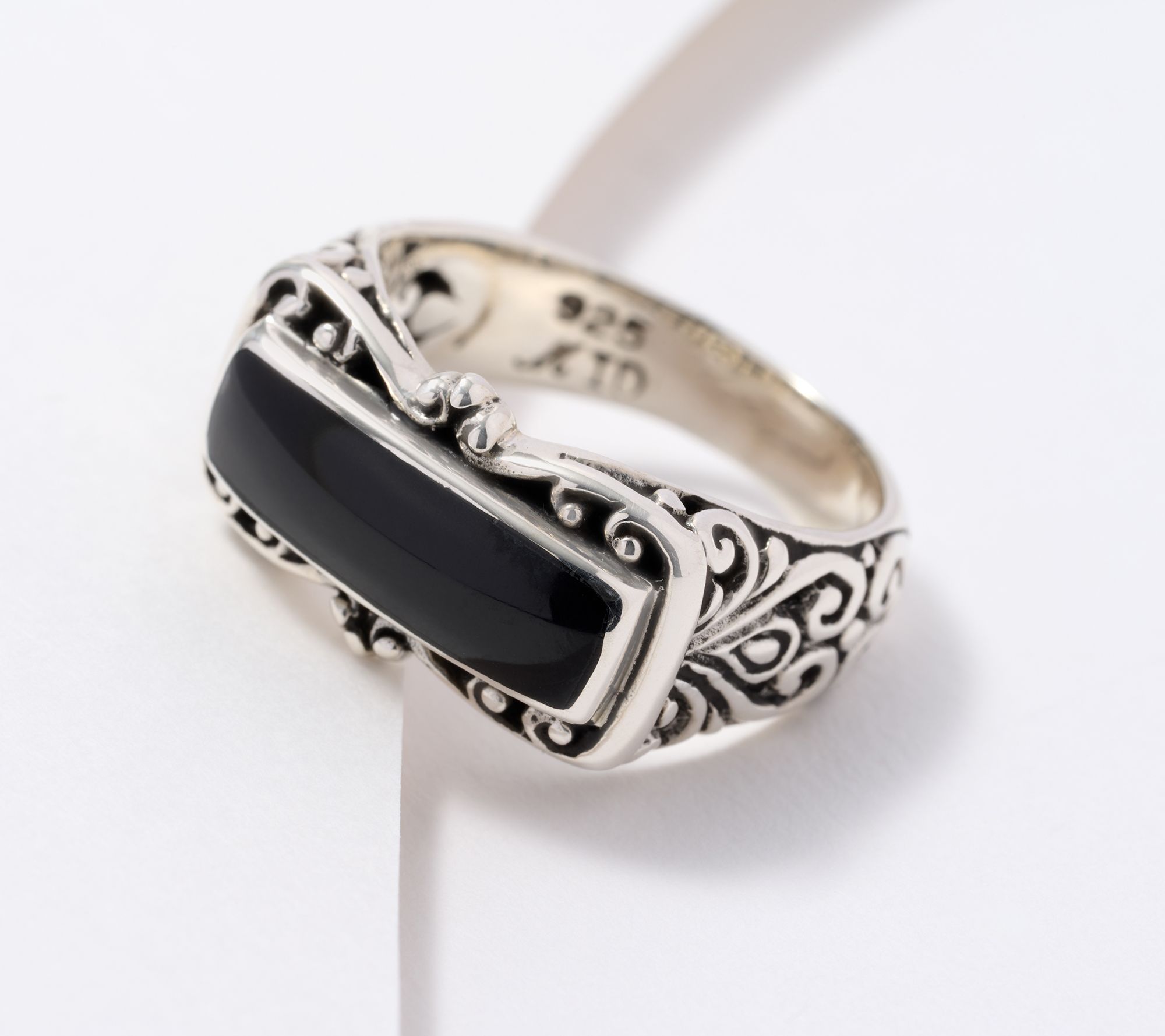 We're all about jewelry that invites a closer look -- like the beautifully oxidized sterling silver work on this pretty mother-of-pearl ring.
