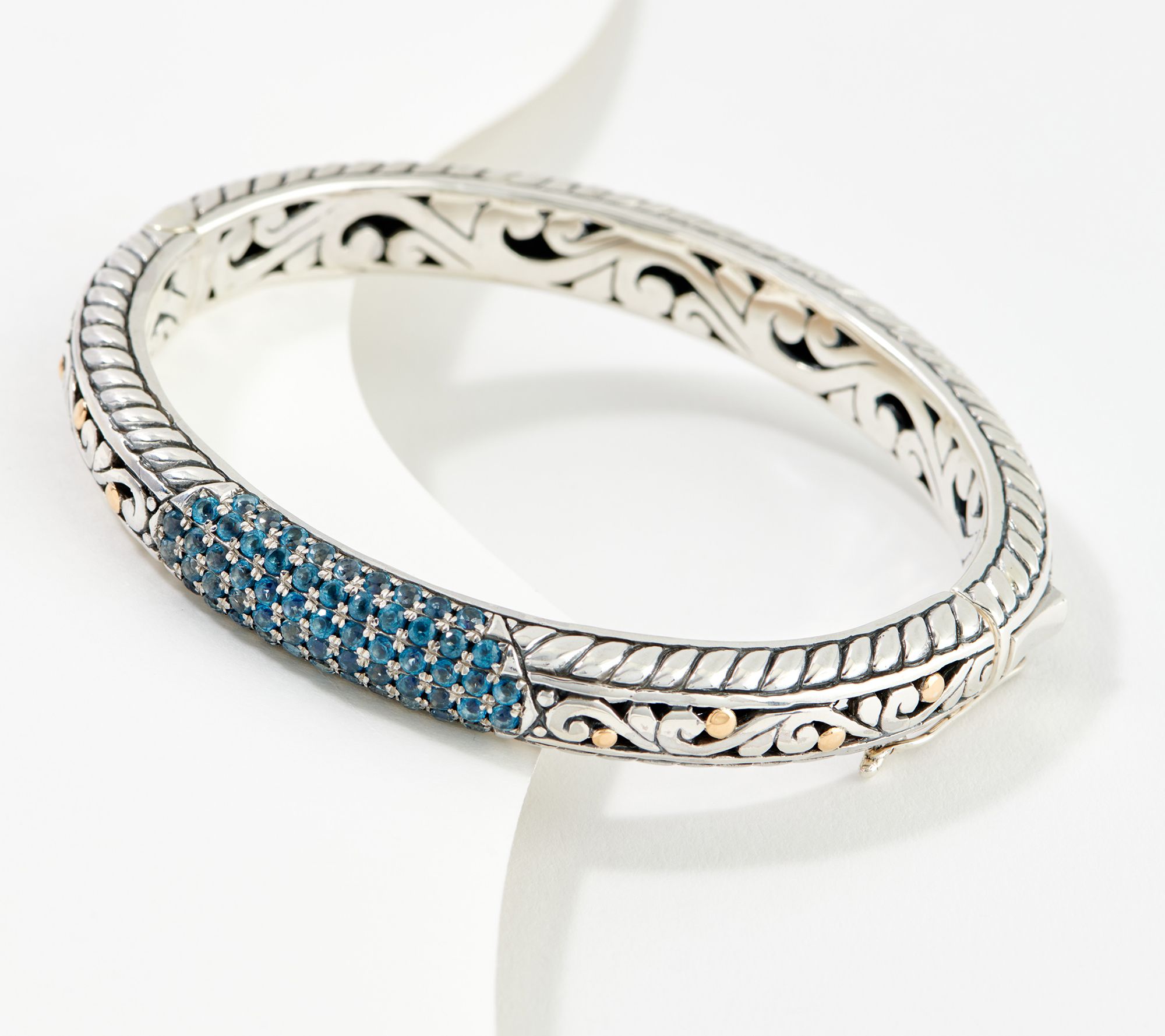"As Is" Artisan Crafted Sterl. Silver & 18K Gemstone Hinged Bangle