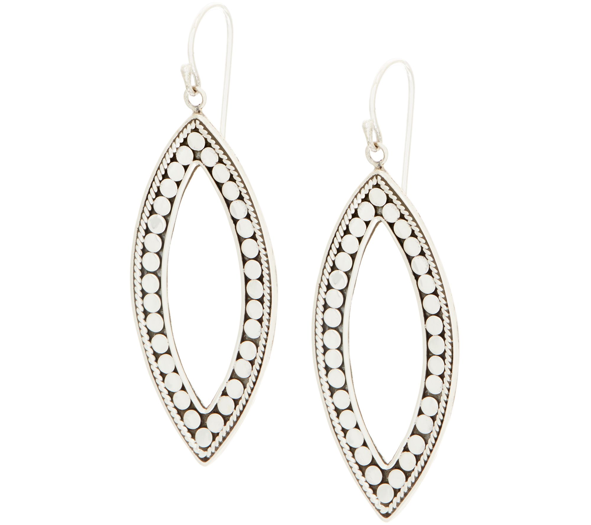 A open design with a smattering of dots, these sterling silver drop earrings accentuate both short and long hairstyles.