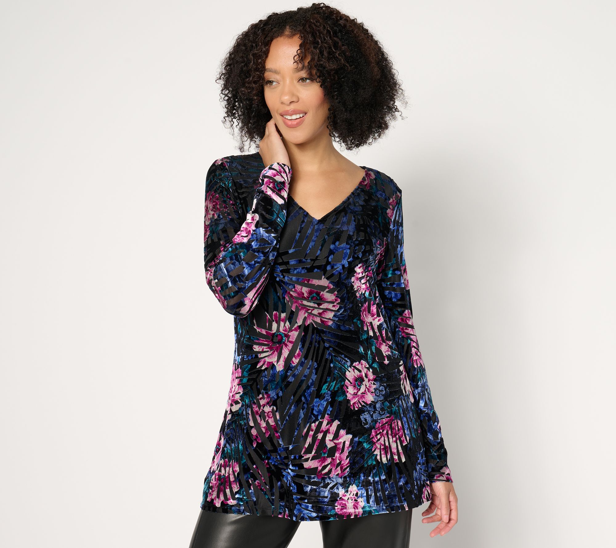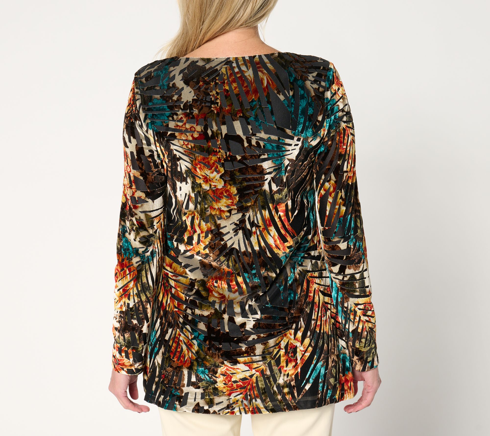 Who needs a dress? This luxe-looking top in an earth-moving burnout print provides plenty of intrigue -- for an elegant dinner party, holiday gathering, or a glam girls' night out. From Women with Control®.